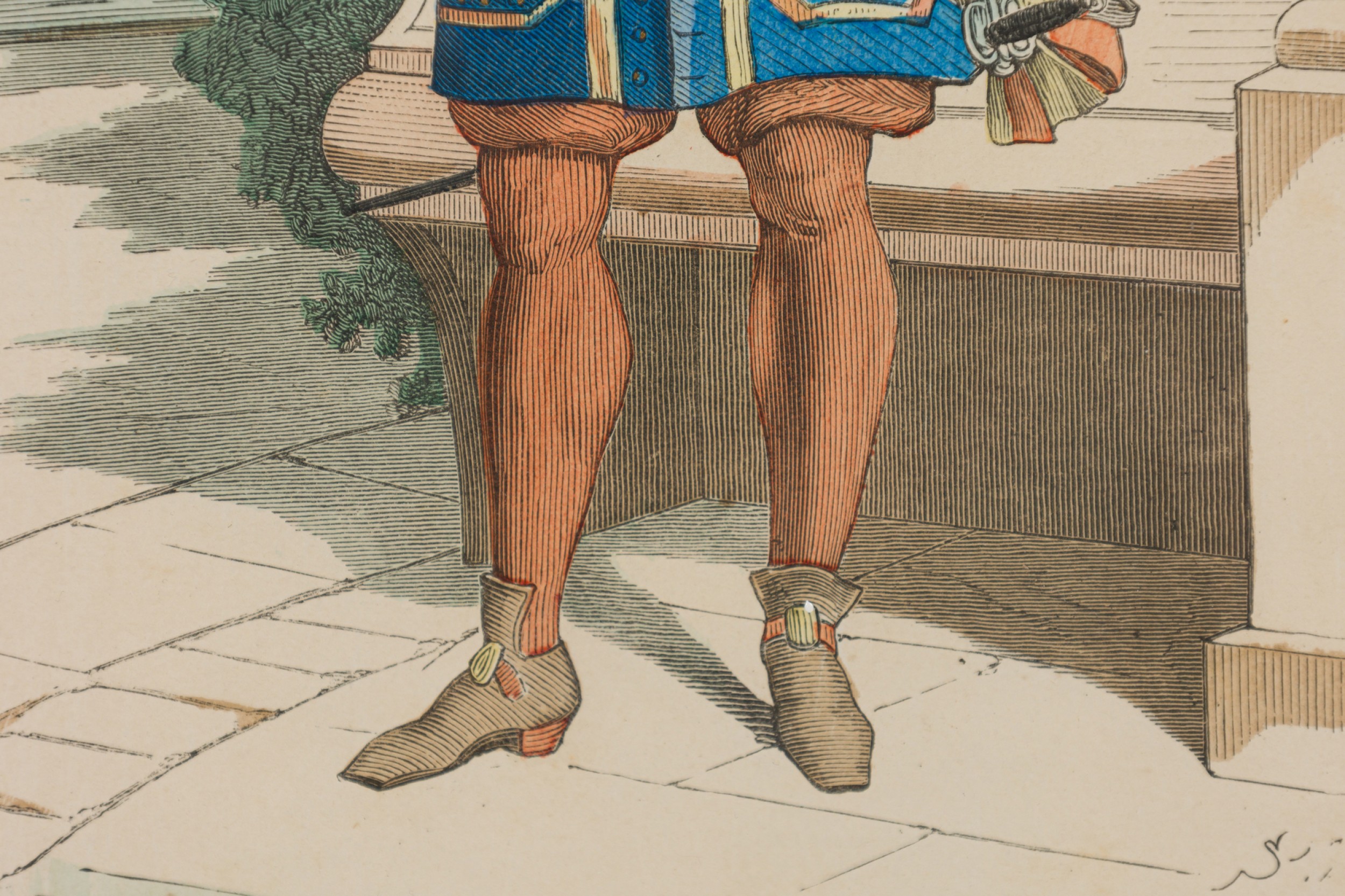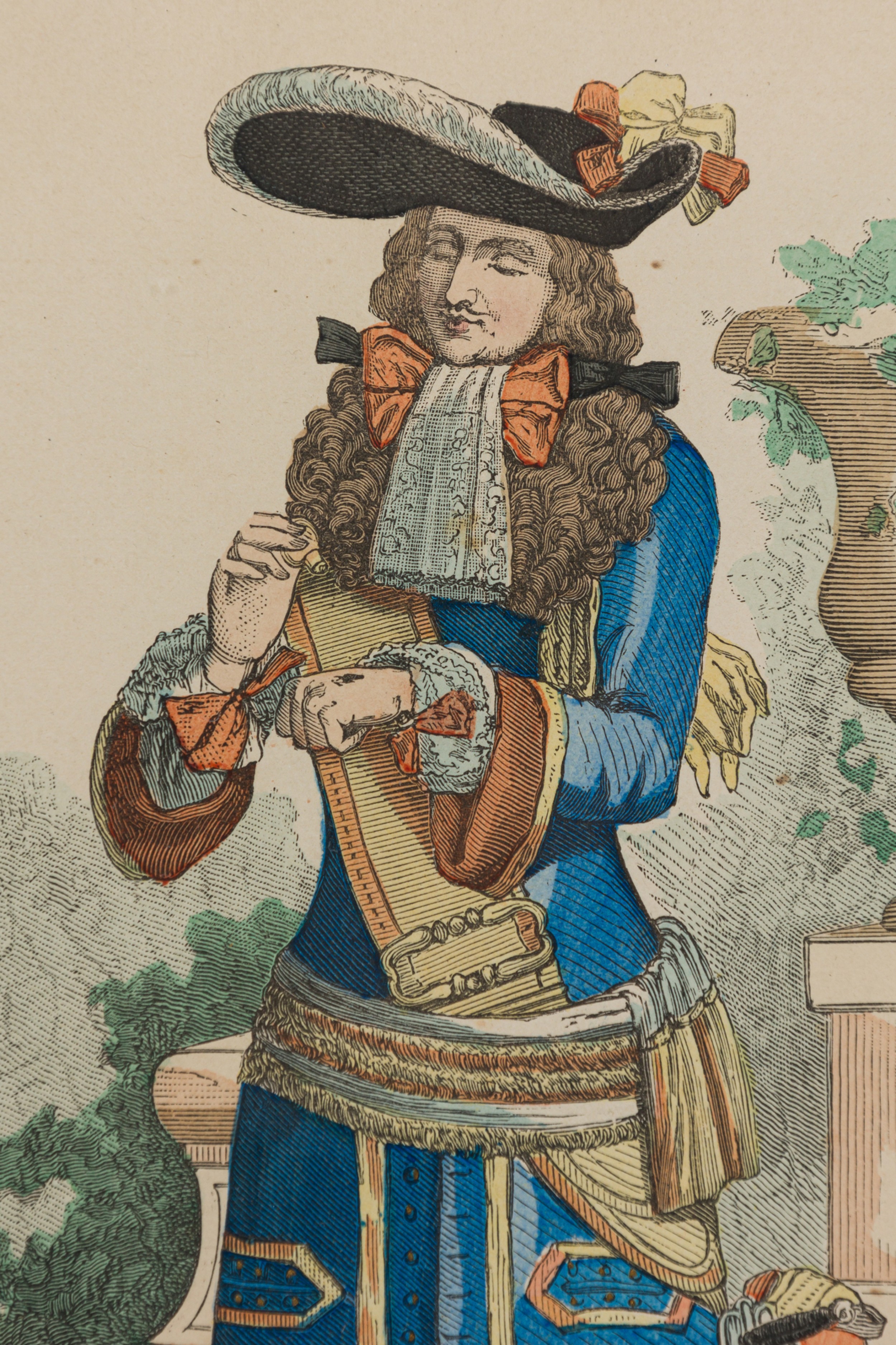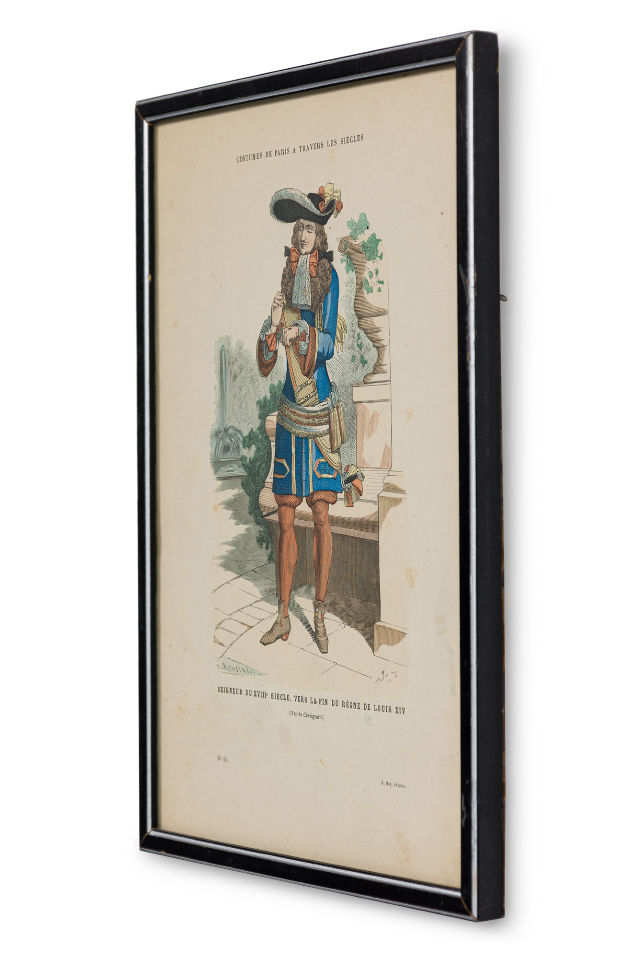 French Louis XIV Style Framed Lithograph of a Lord in Baroque Attire