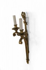 French Louis XV-style (20th Century) gilt bronze bow knot top wall sconce with two electrified lights..
