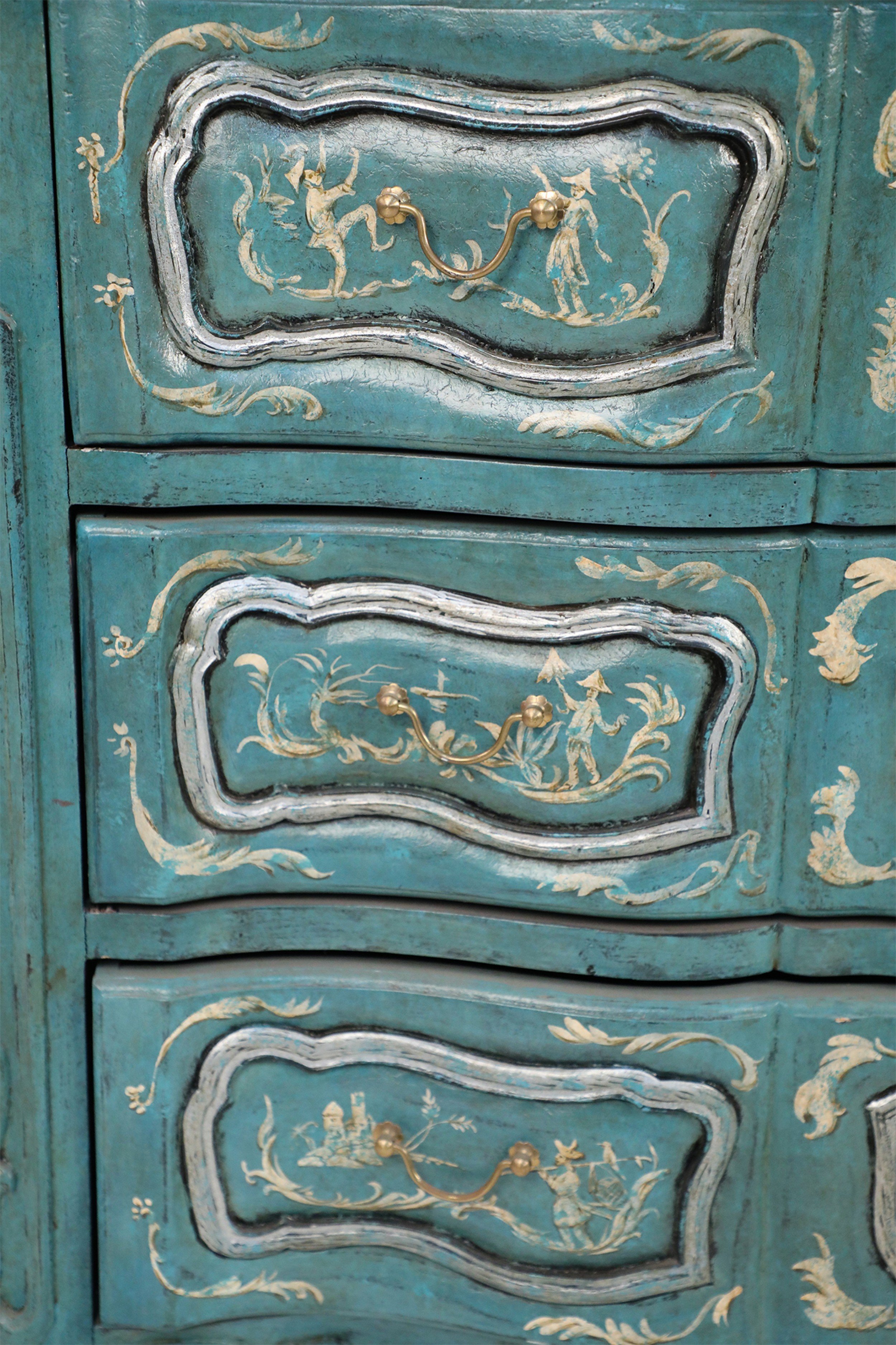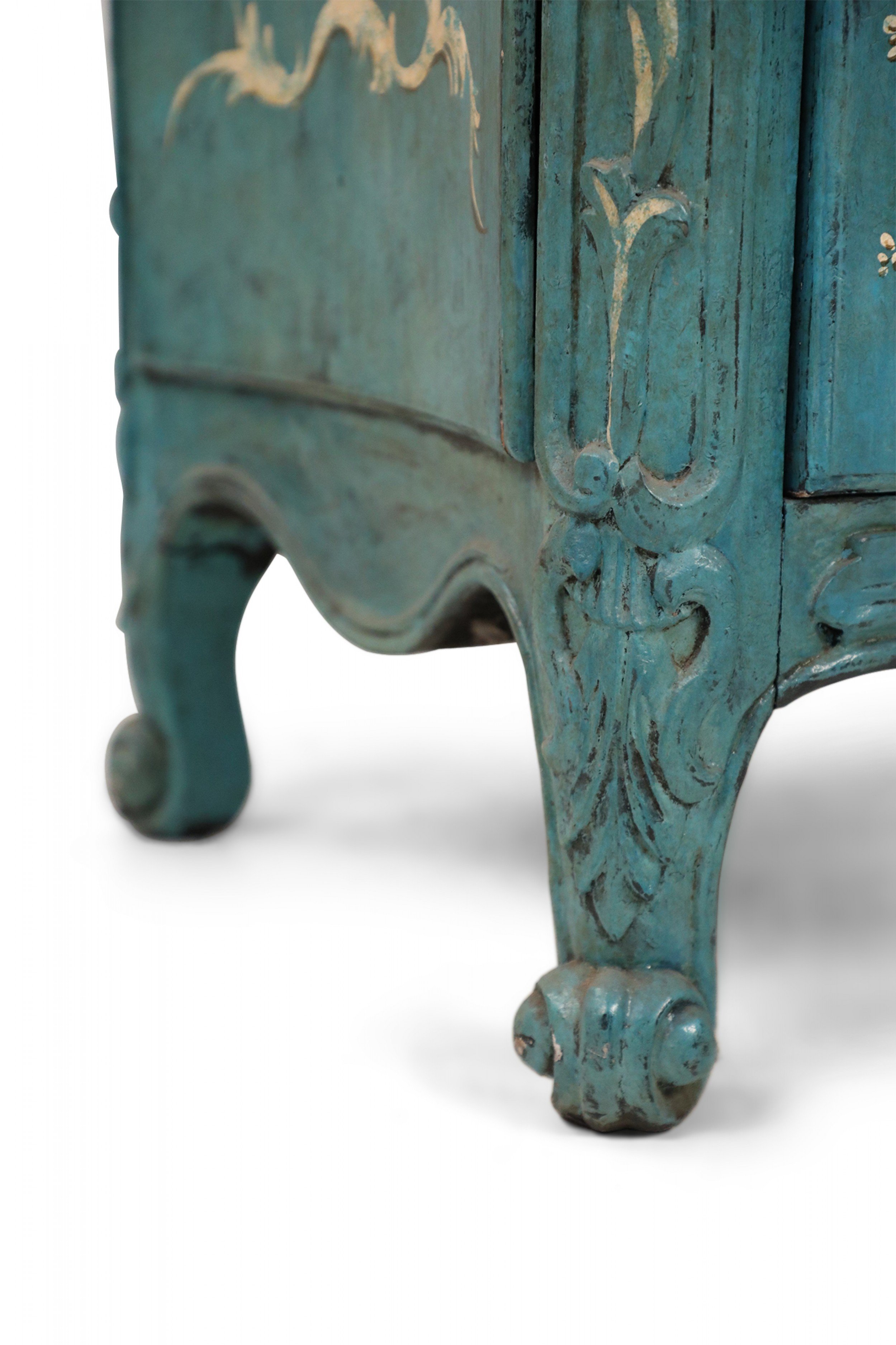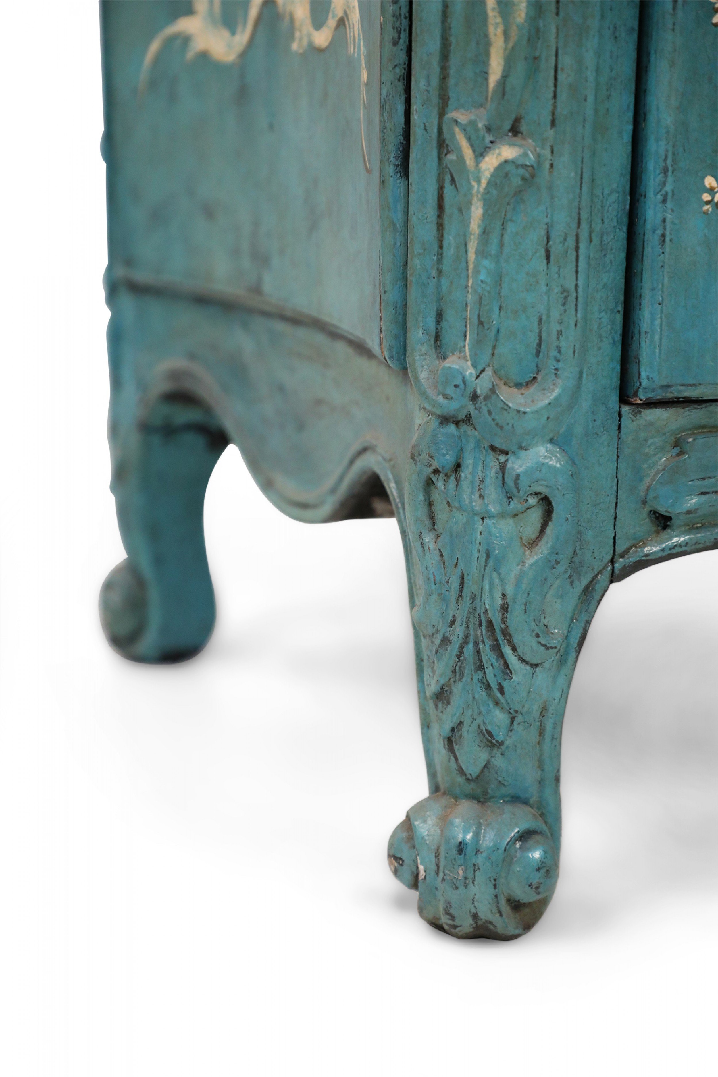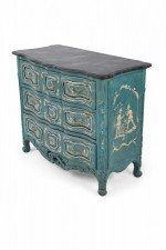 French Louis XV Style Teal Serpentine Commode