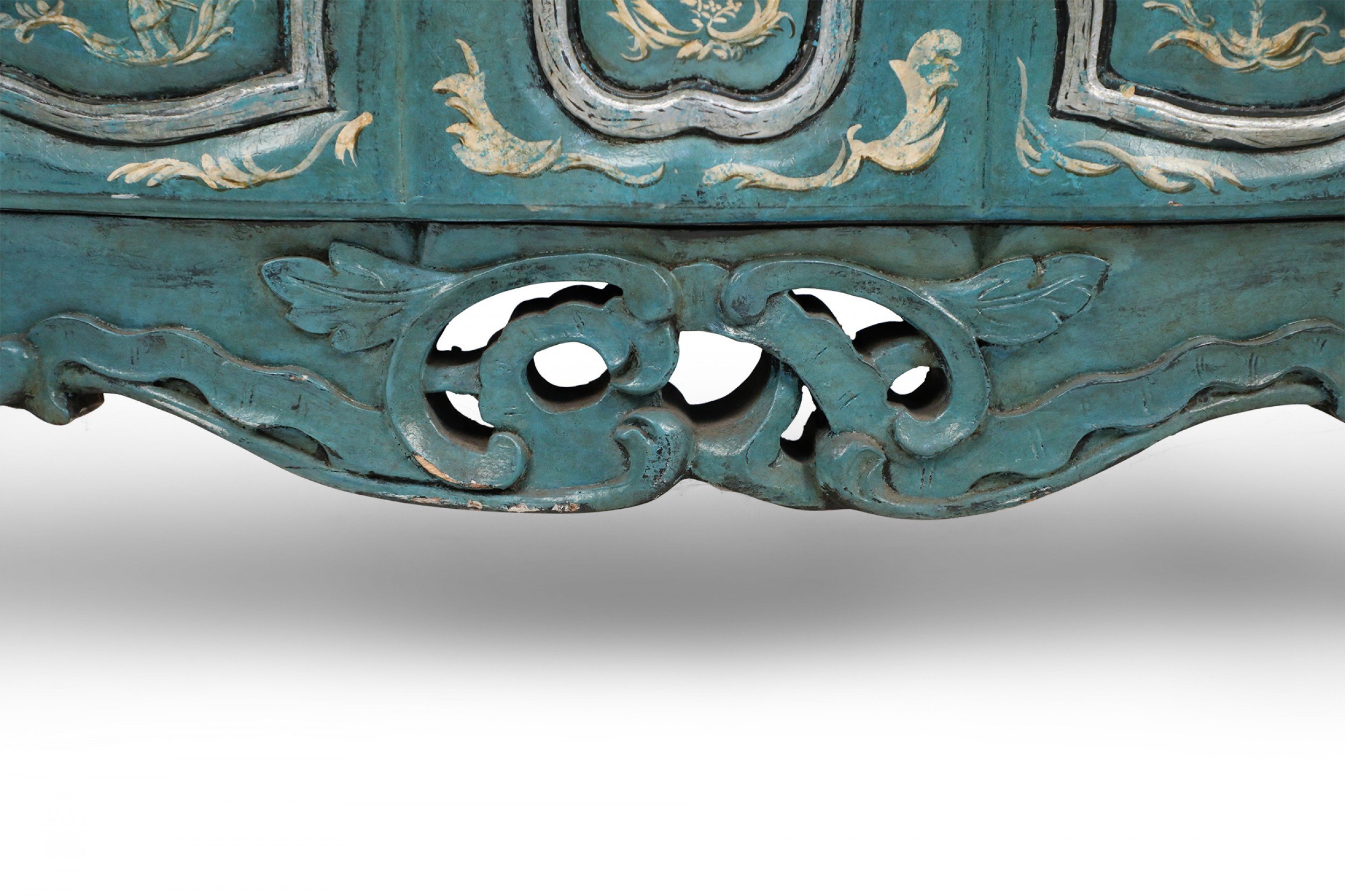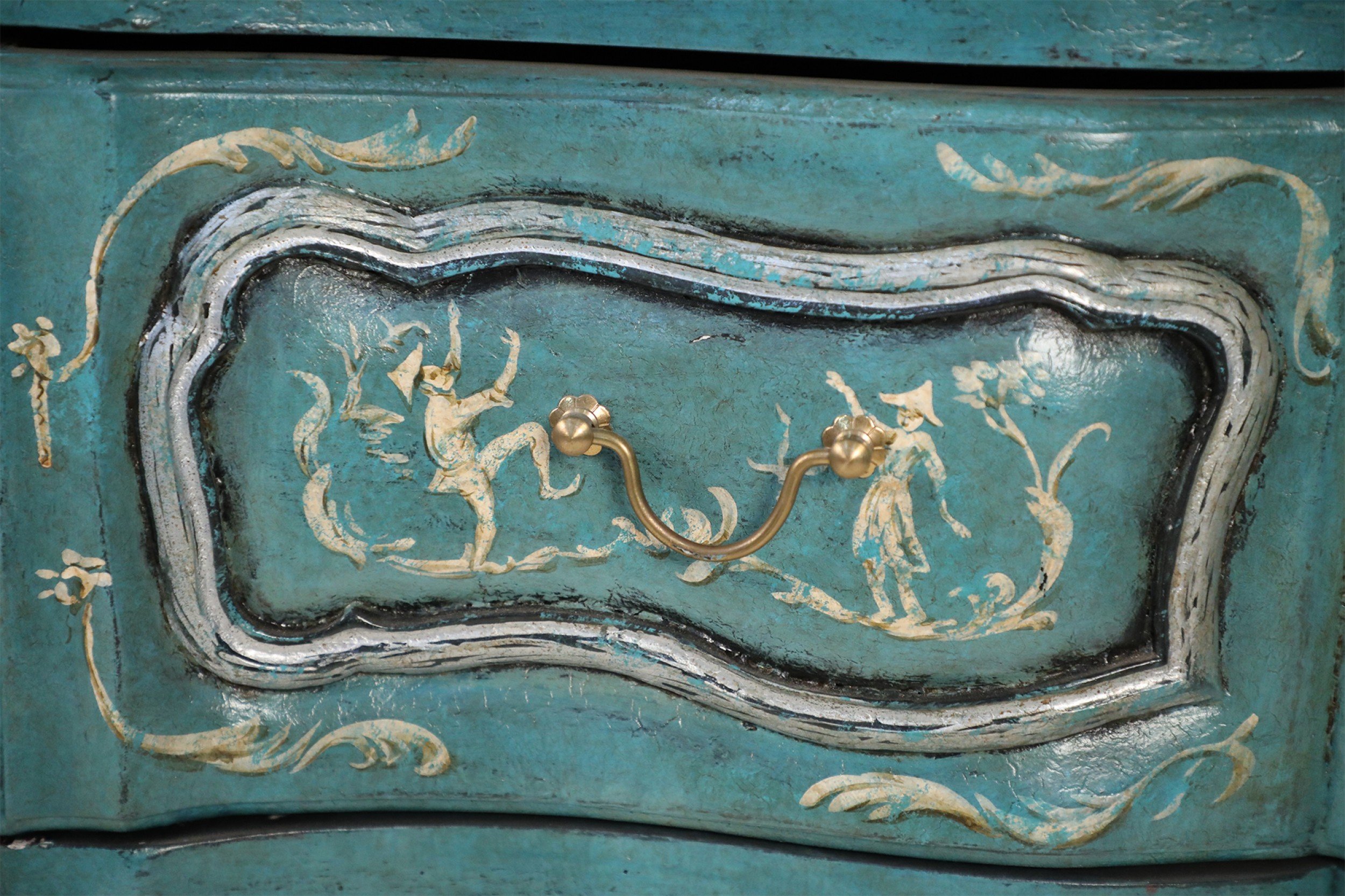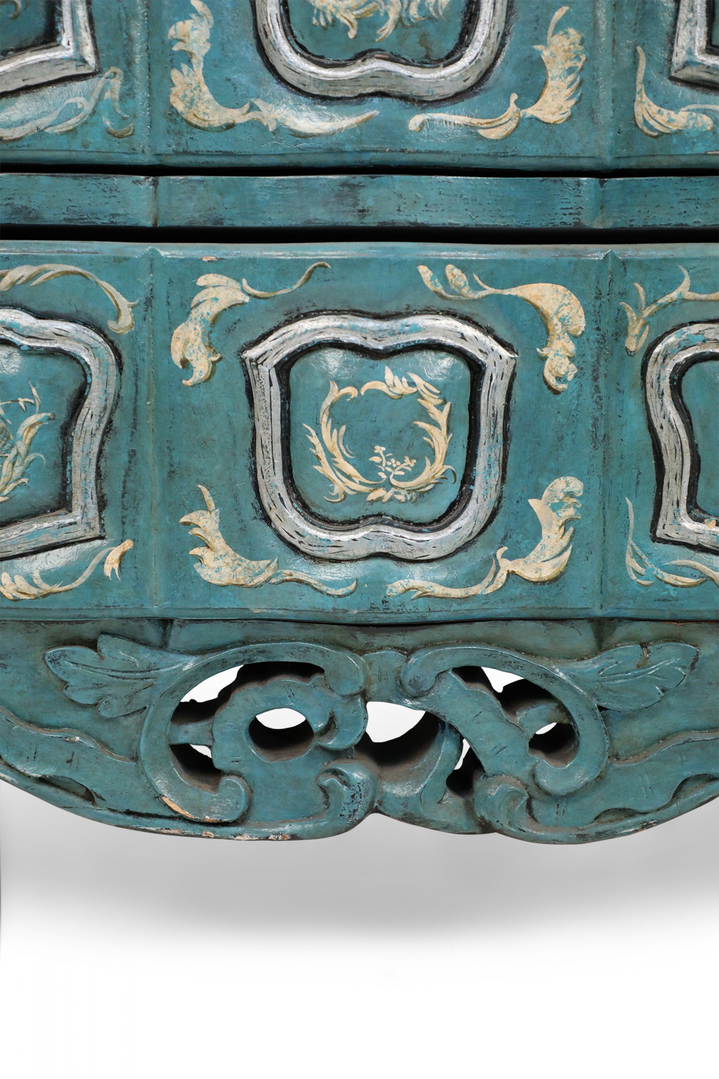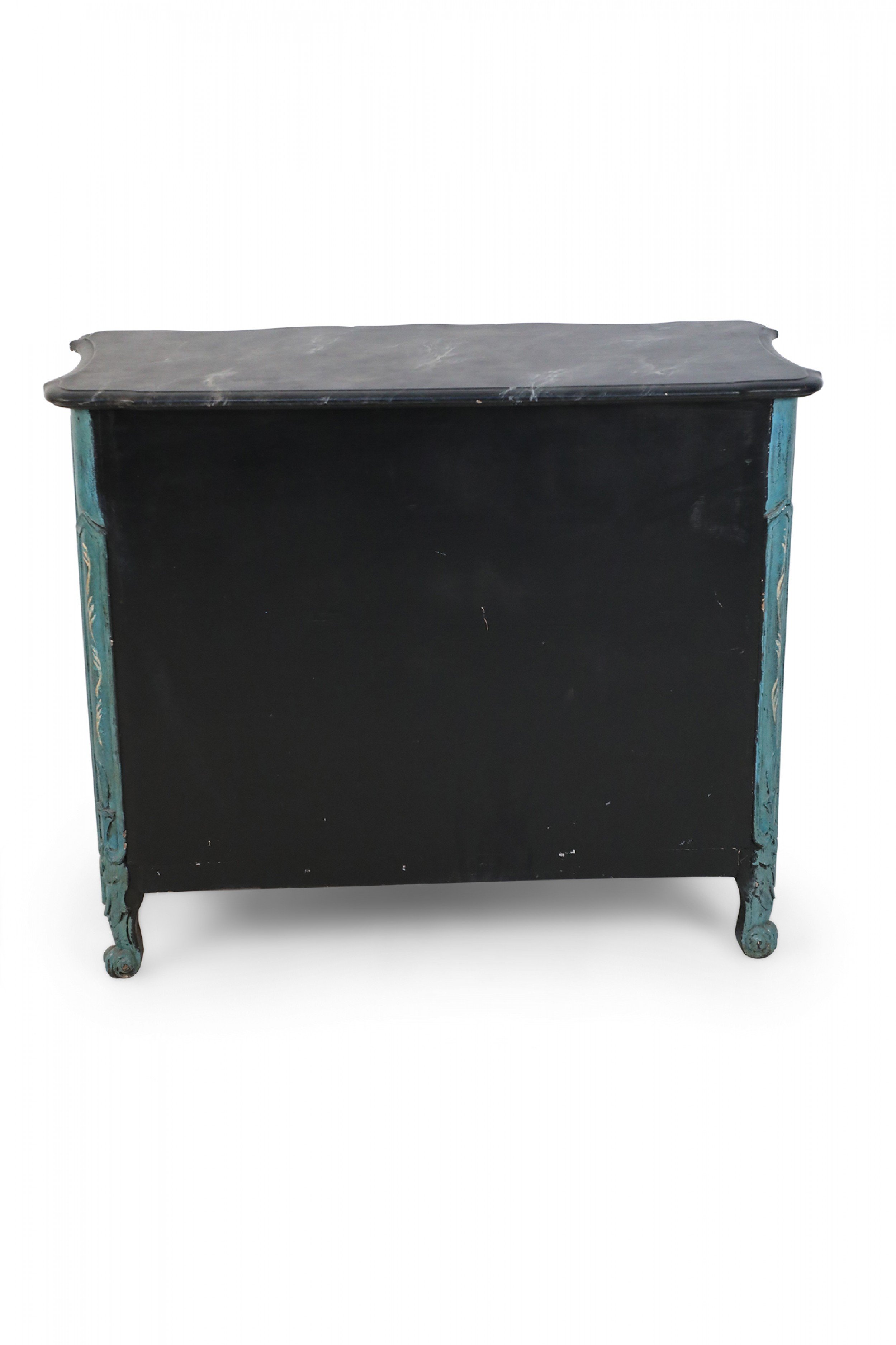 French Louis XV Style Teal Serpentine Commode