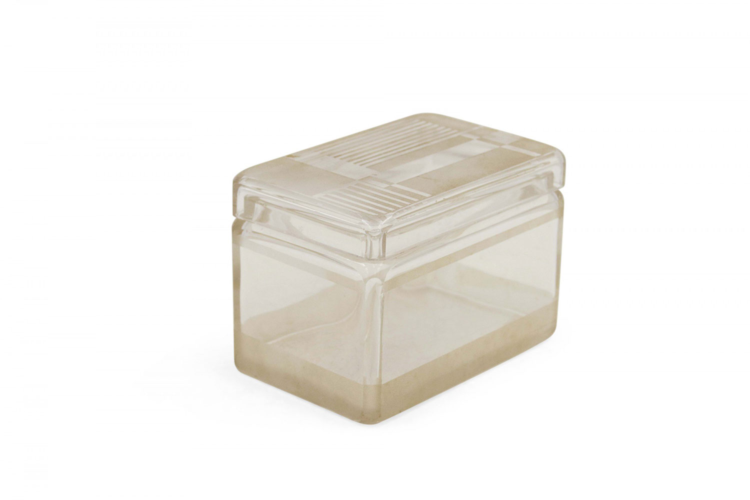 French Art Deco Frosted Geometric Design Lidded Glass Box