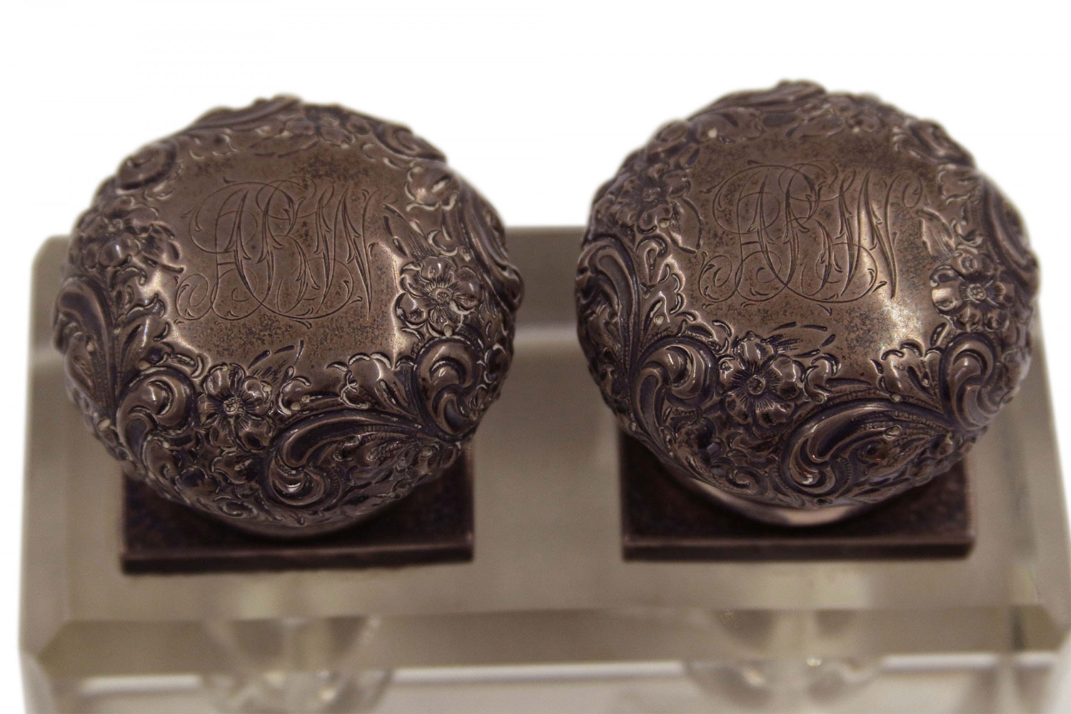 French Victorian Embossed Sterling Silver and Glass Inkwell
