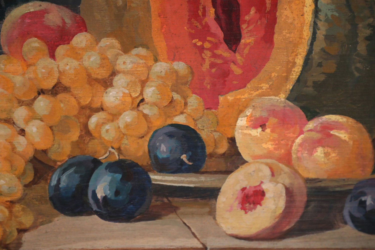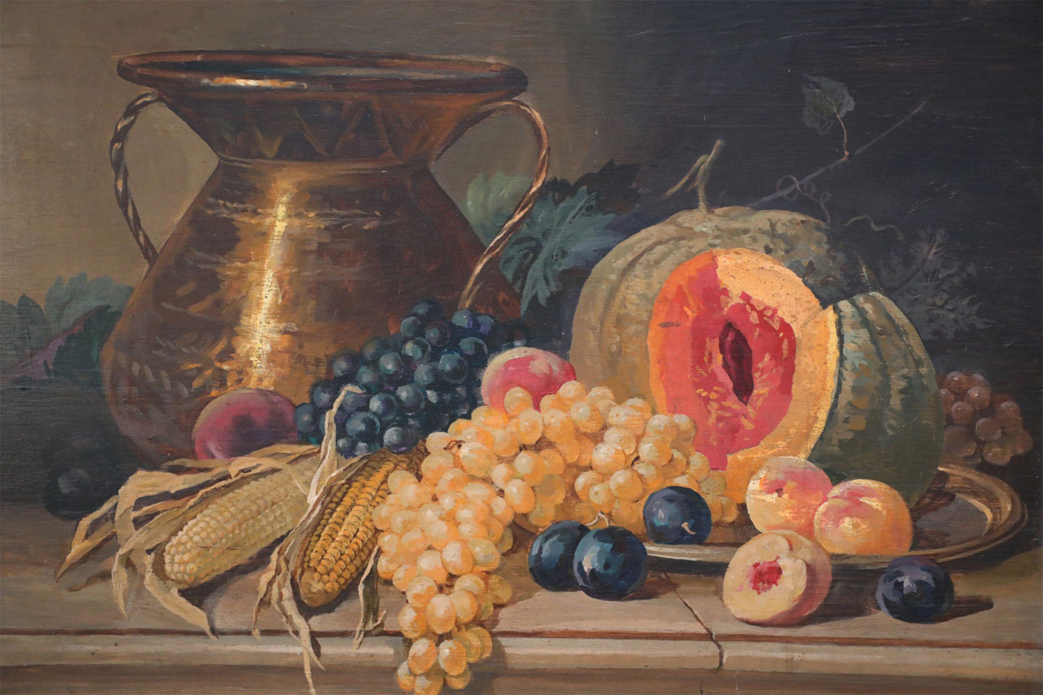 Fruits, Vegetables, and Gold Urn Still Life Painting on Wood