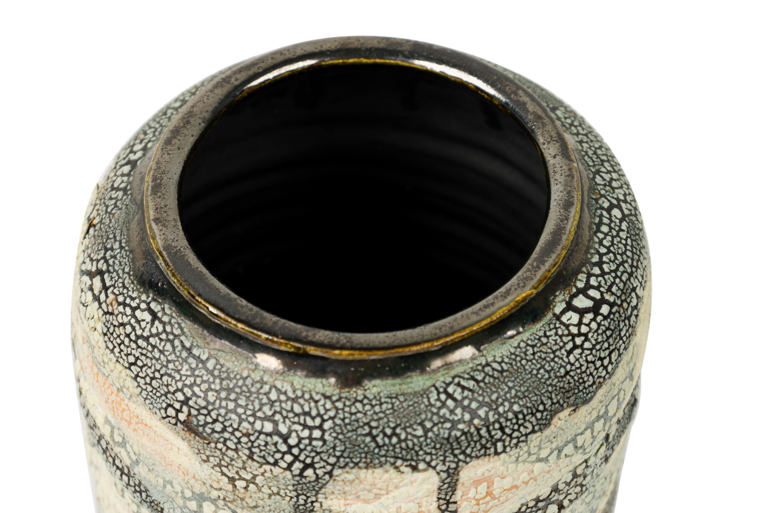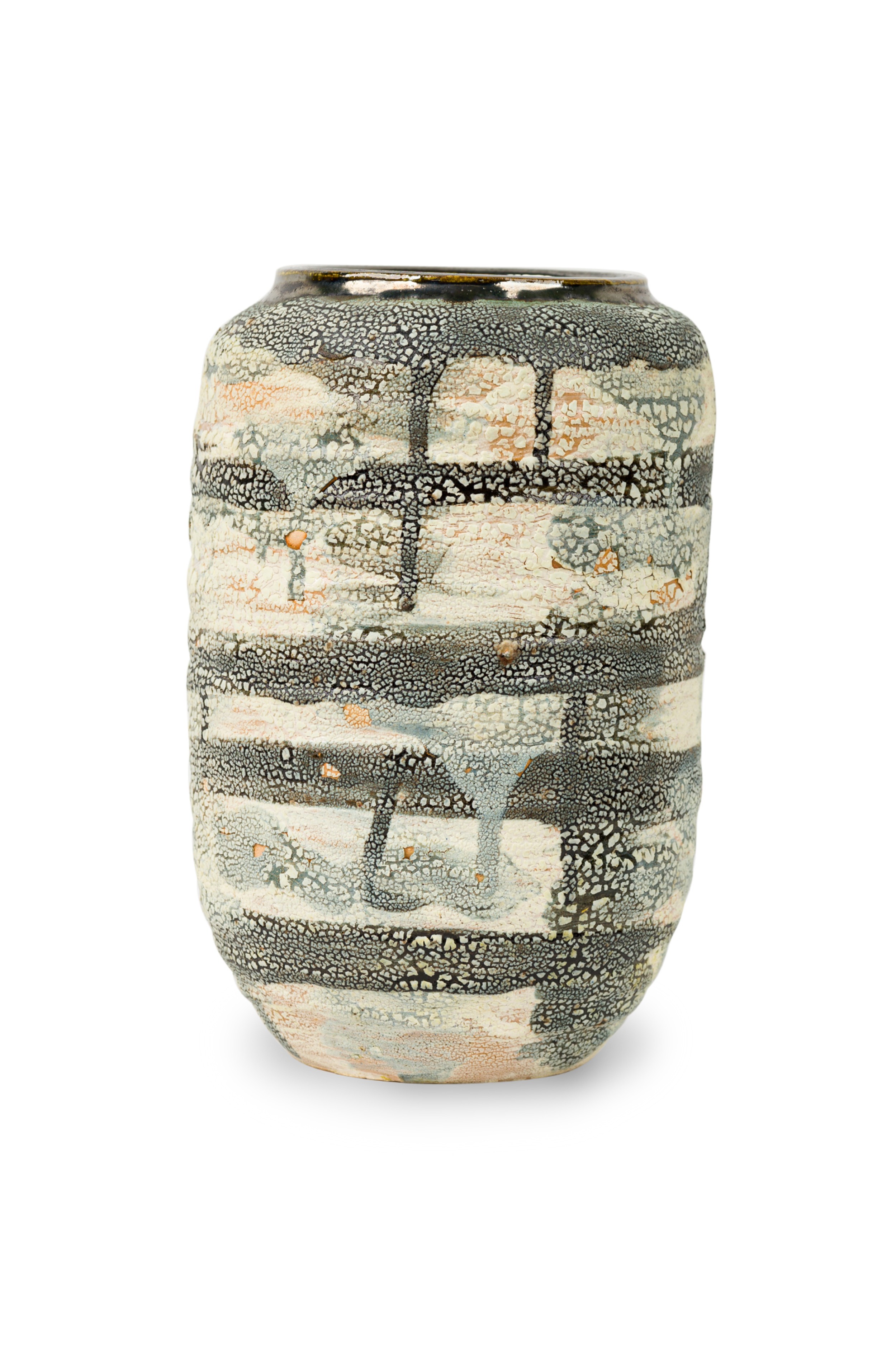 Gary DiPasquale Contemporary Black, Grey and White Tall Drip Pattern Vase with Black Interior