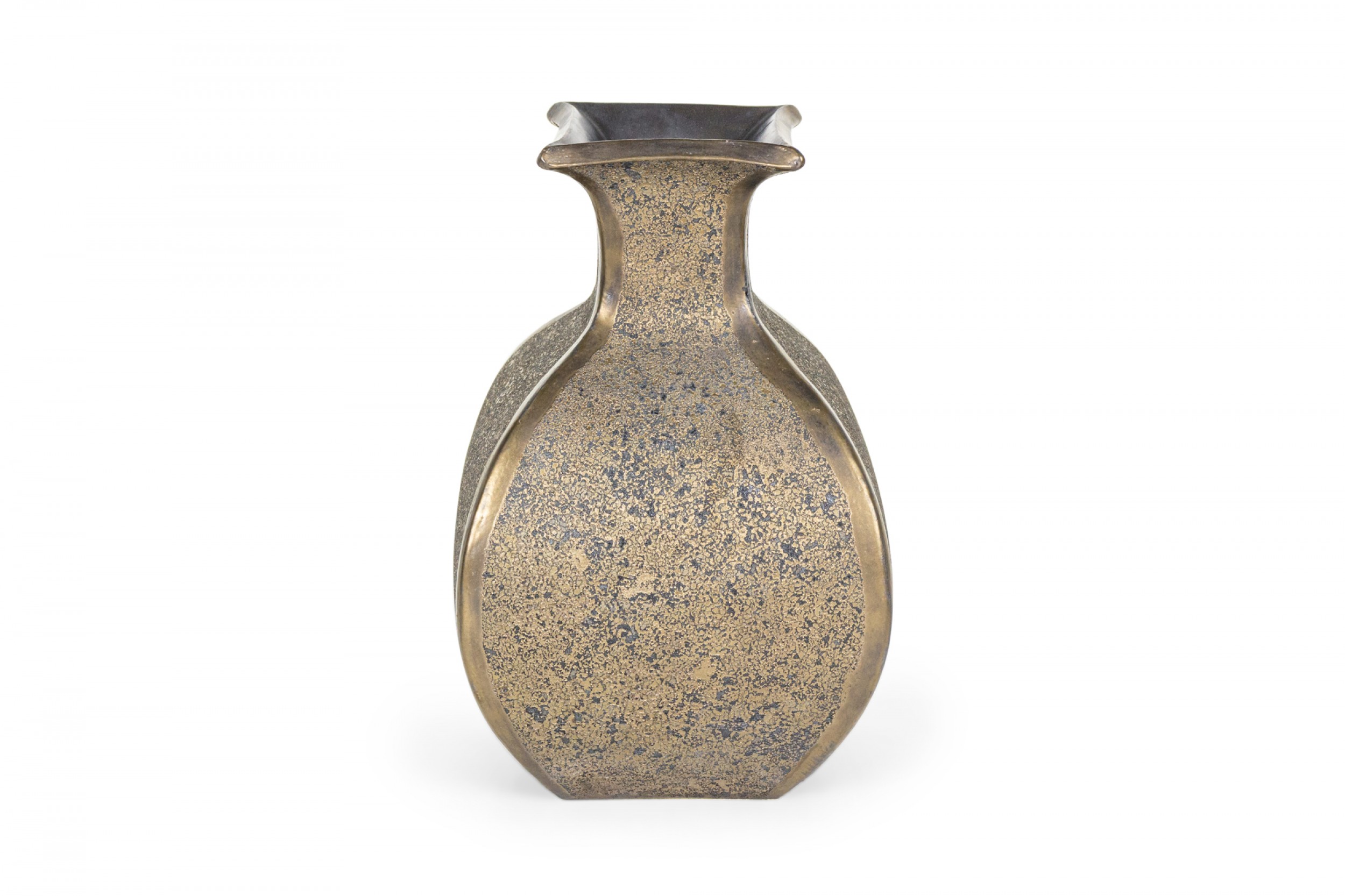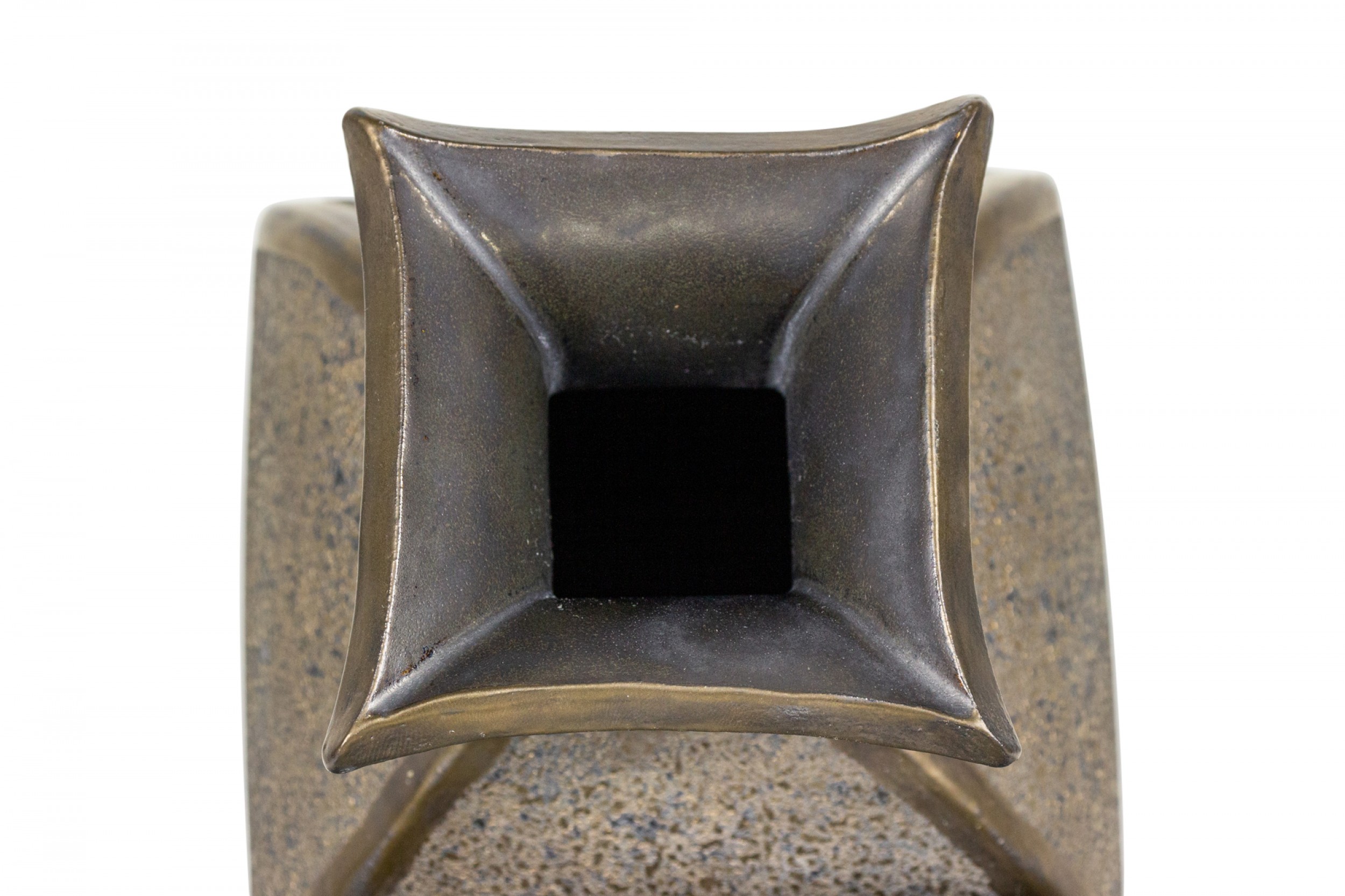 Gary DiPasquale Contemporary Ceramic Squared Flared Lip Bronze Glazed Vase
