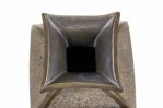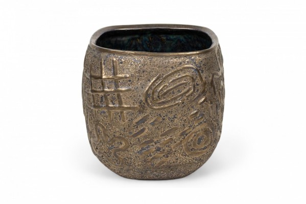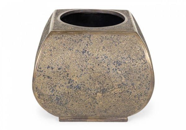 Contemporary ceramic vase with squared sides and a flared lip, finished with a bronze glaze. (GARY DIPASQUALE)