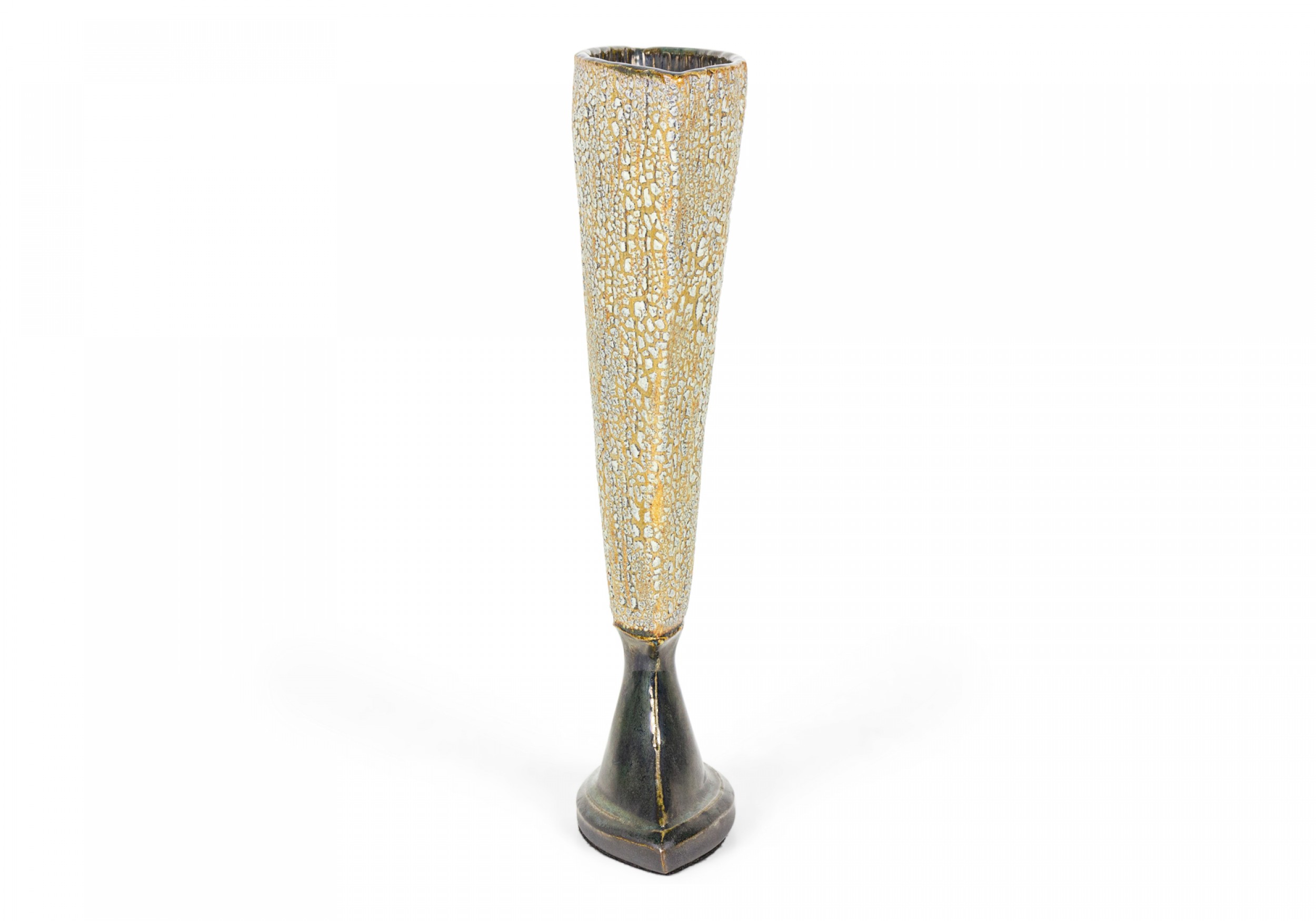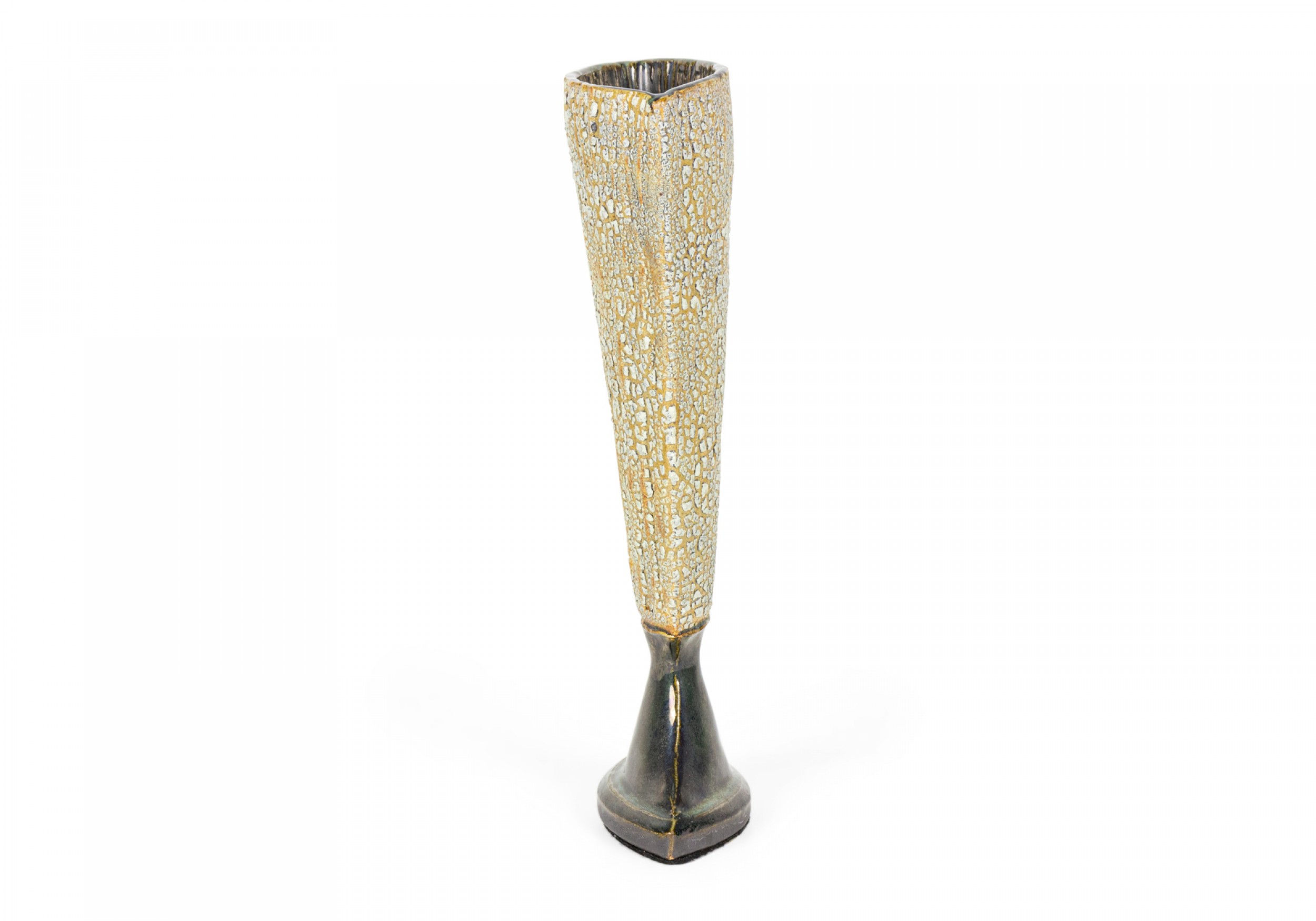 Contemporary ceramic vase with a tall thin envelope form and bark-like textured finish. (GARY DIPASQUALE)