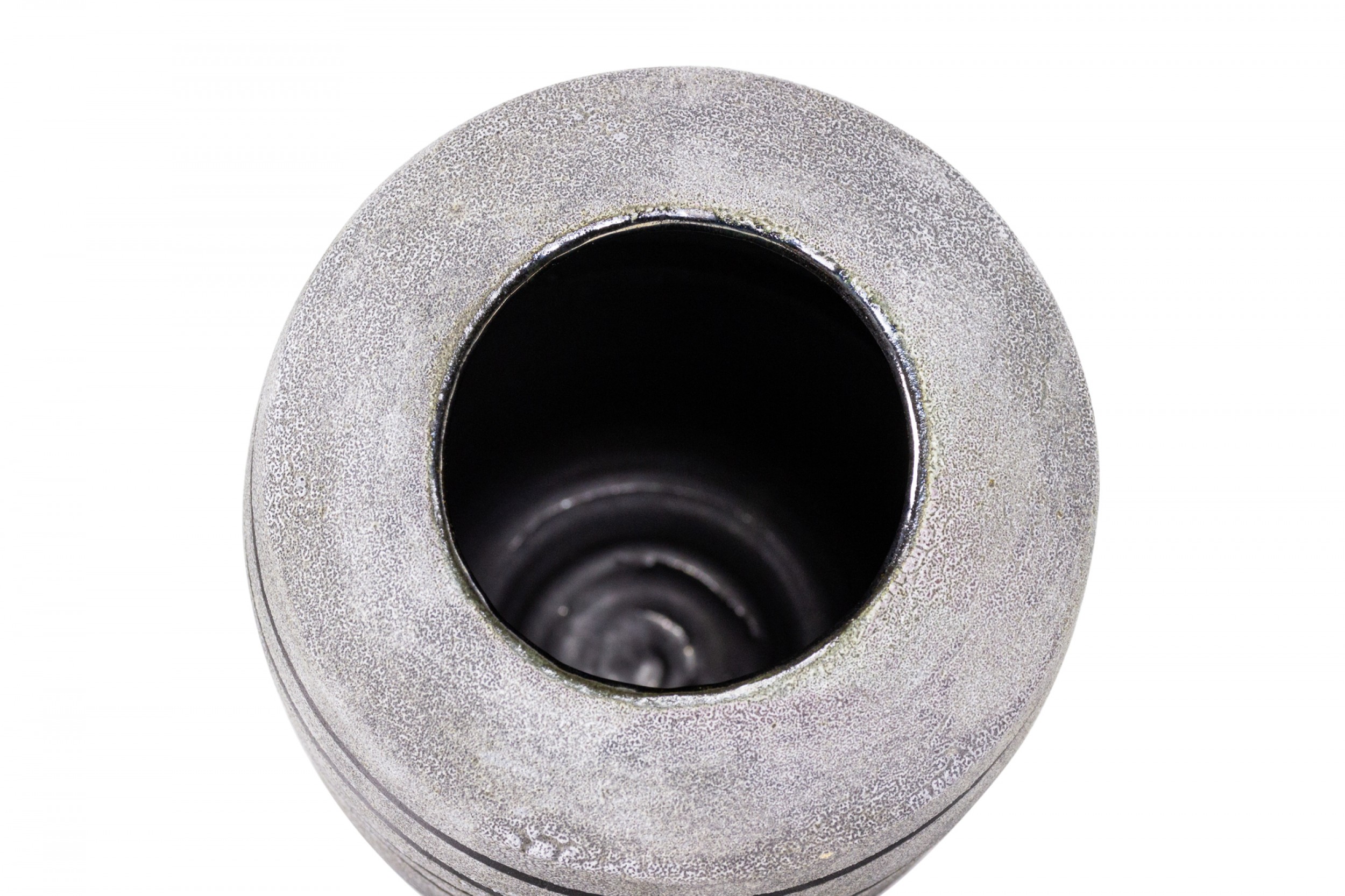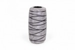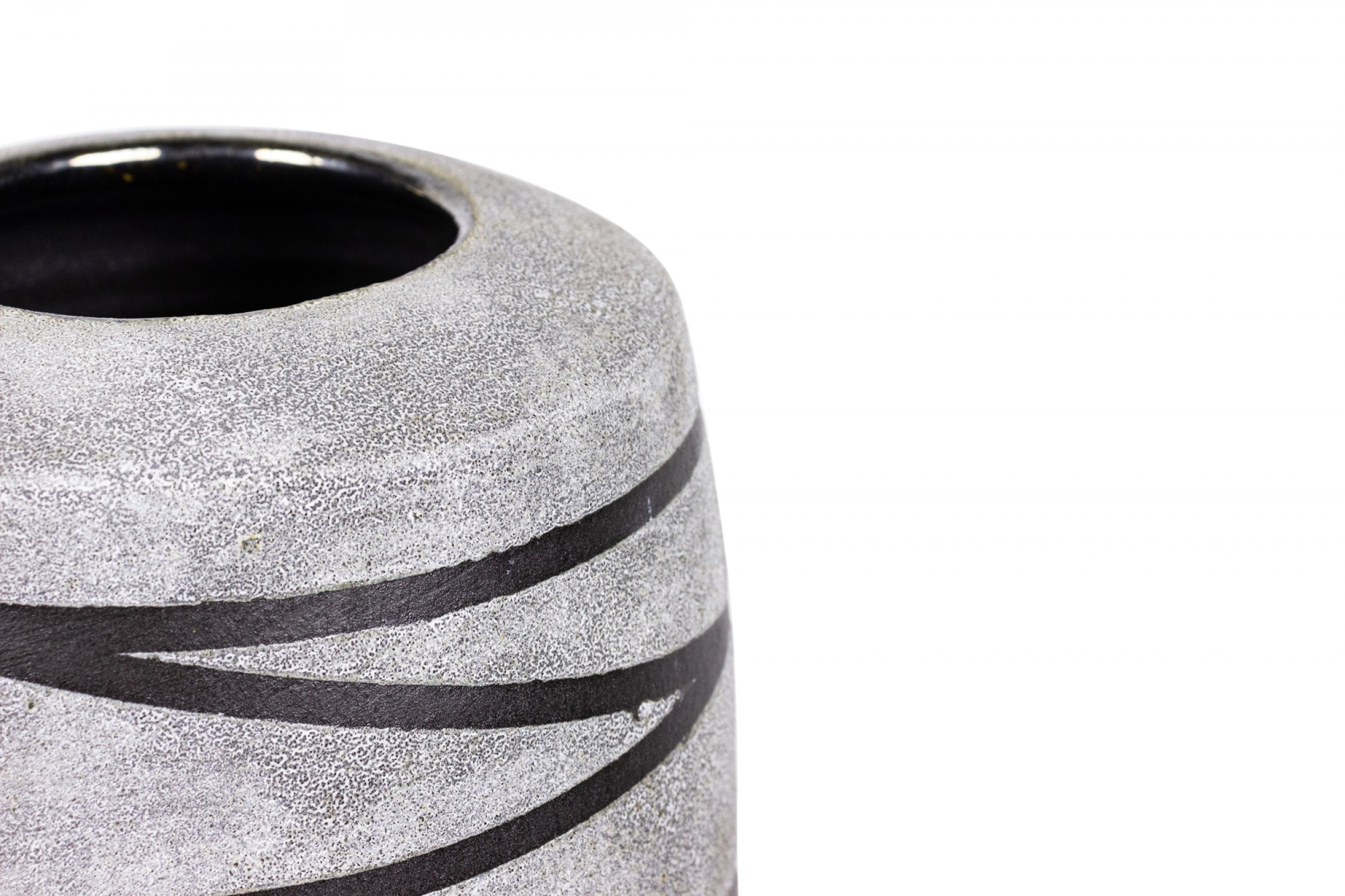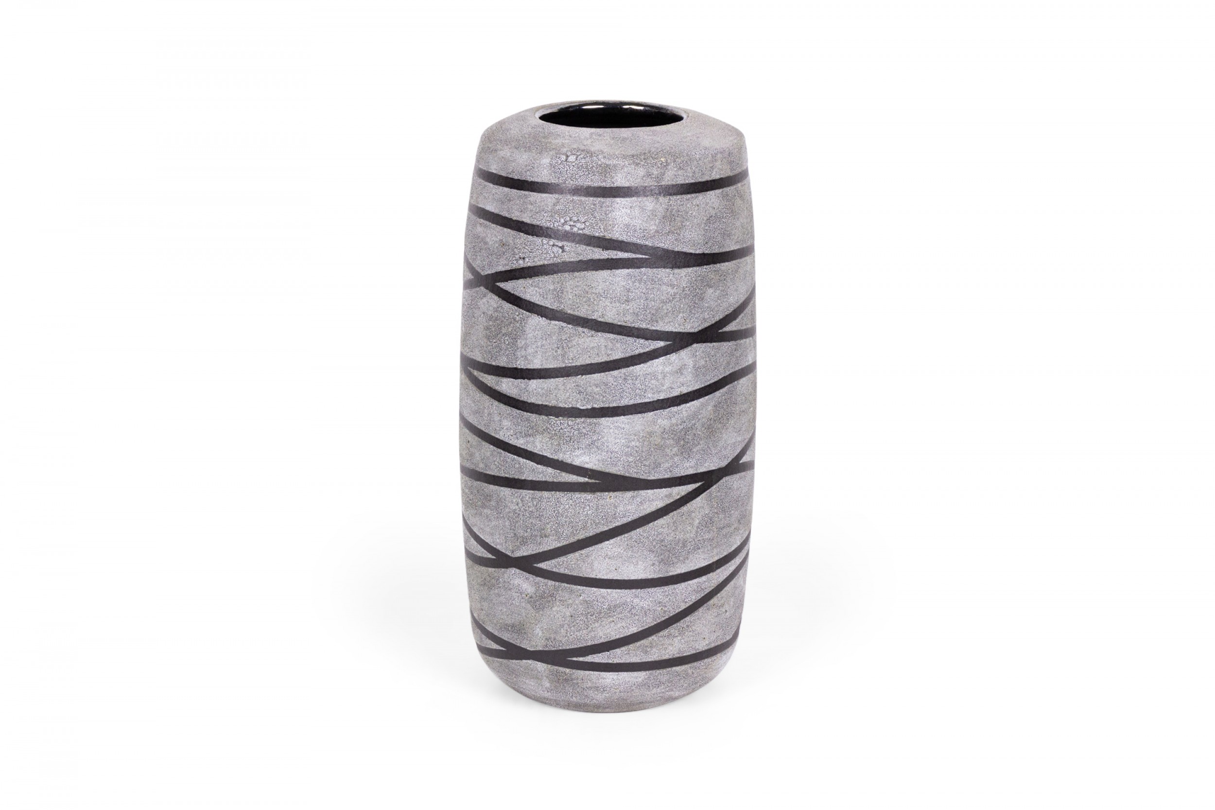 Contemporary thrown tall ceramic vase with a gray and black striped pattern and textured finish. (GARY DIPASQUALE)