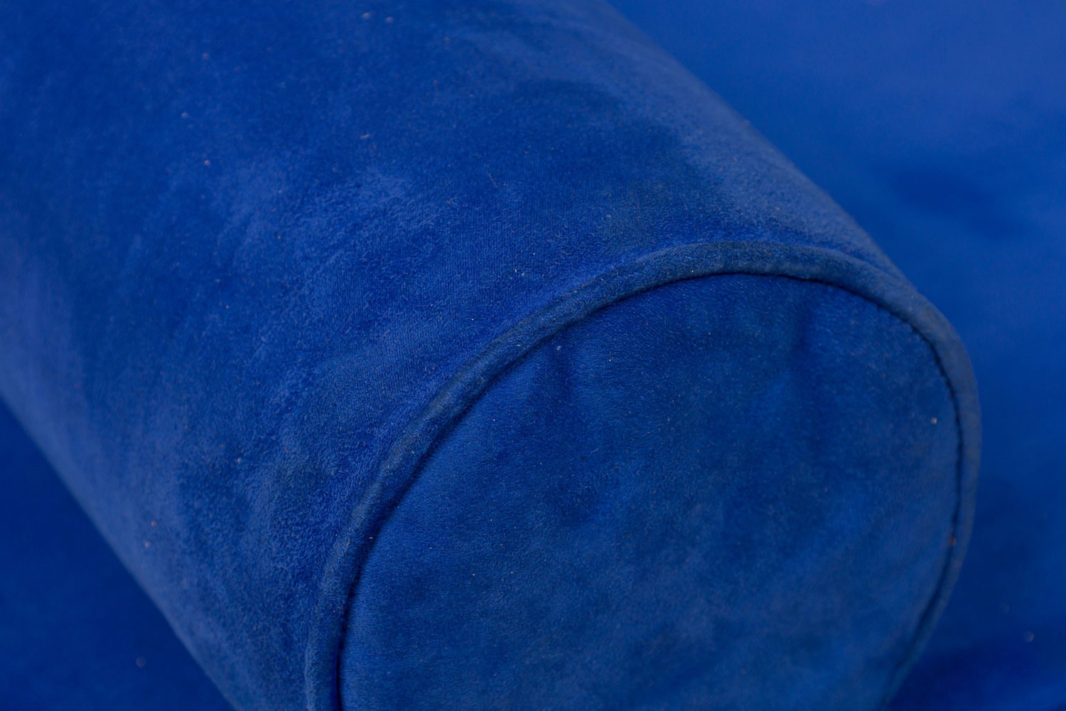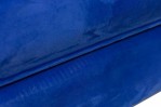 American Mid-Century daybed with a royal blue velour upholstered rectangular bed with two matching bolster pillows resting on a chrome frame with a central curved wooden framing piece. (GEORGE NELSON FOR HERMAN MILLER).
