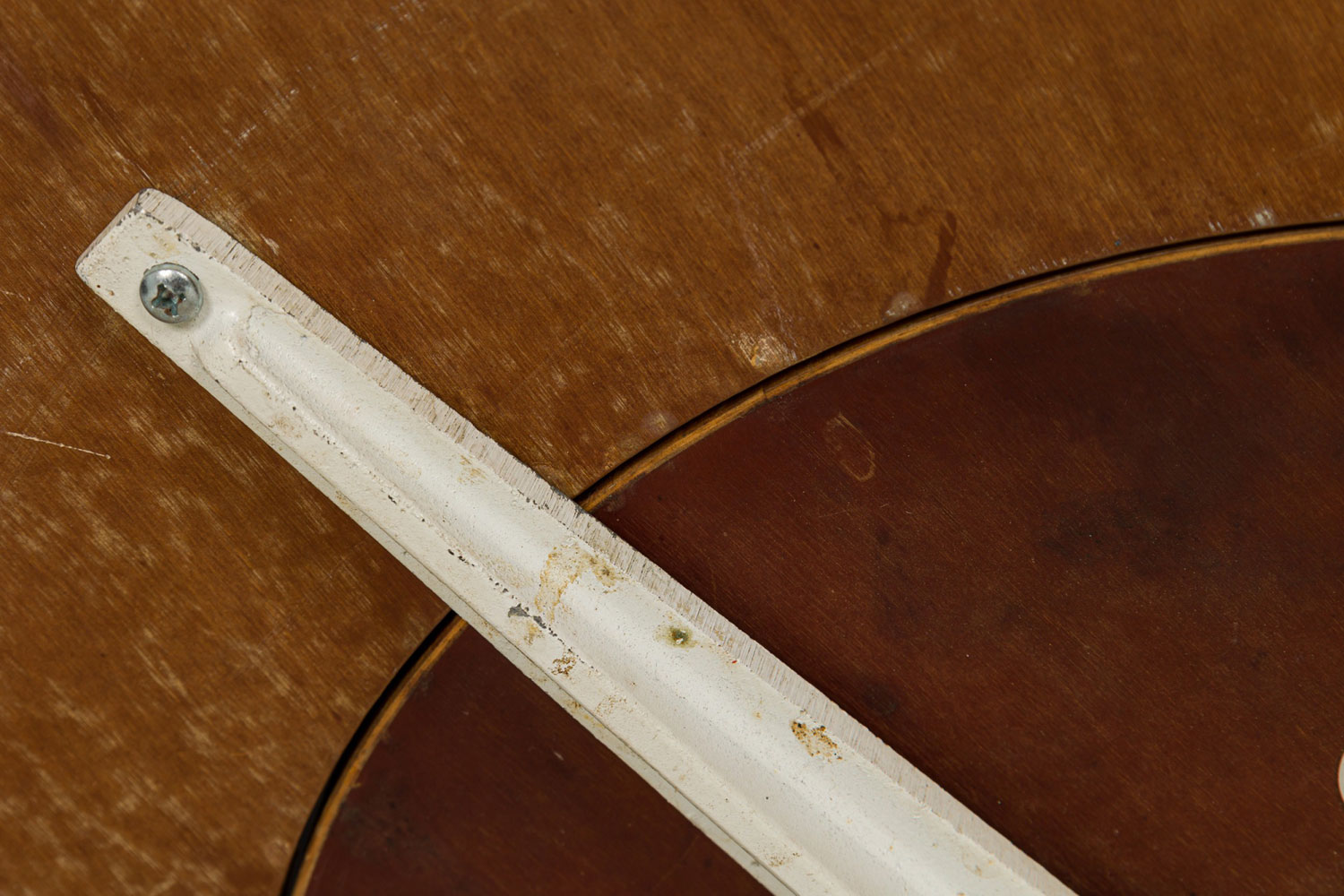 Style: Mid-Century Materials & Techniques: Laminate, metal, wood Category: Tables, Office/Library, Dining Room Good; Wear consistent with age and use