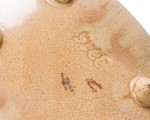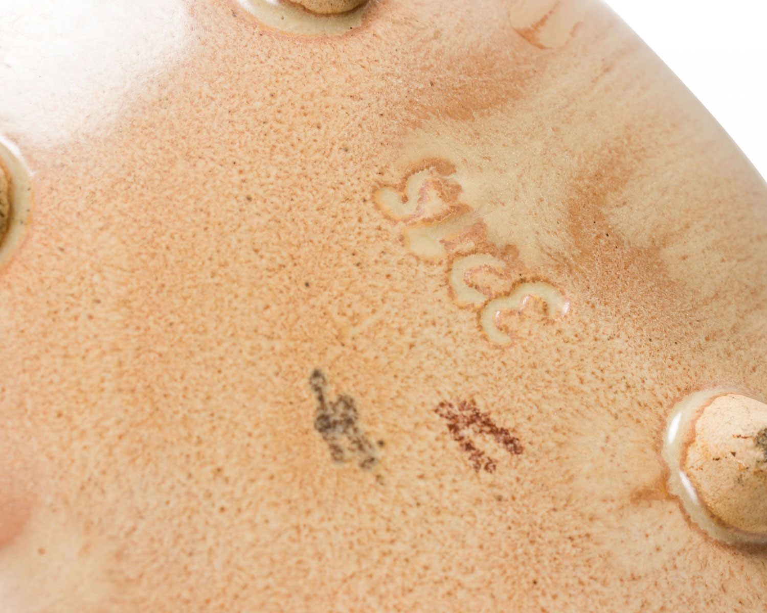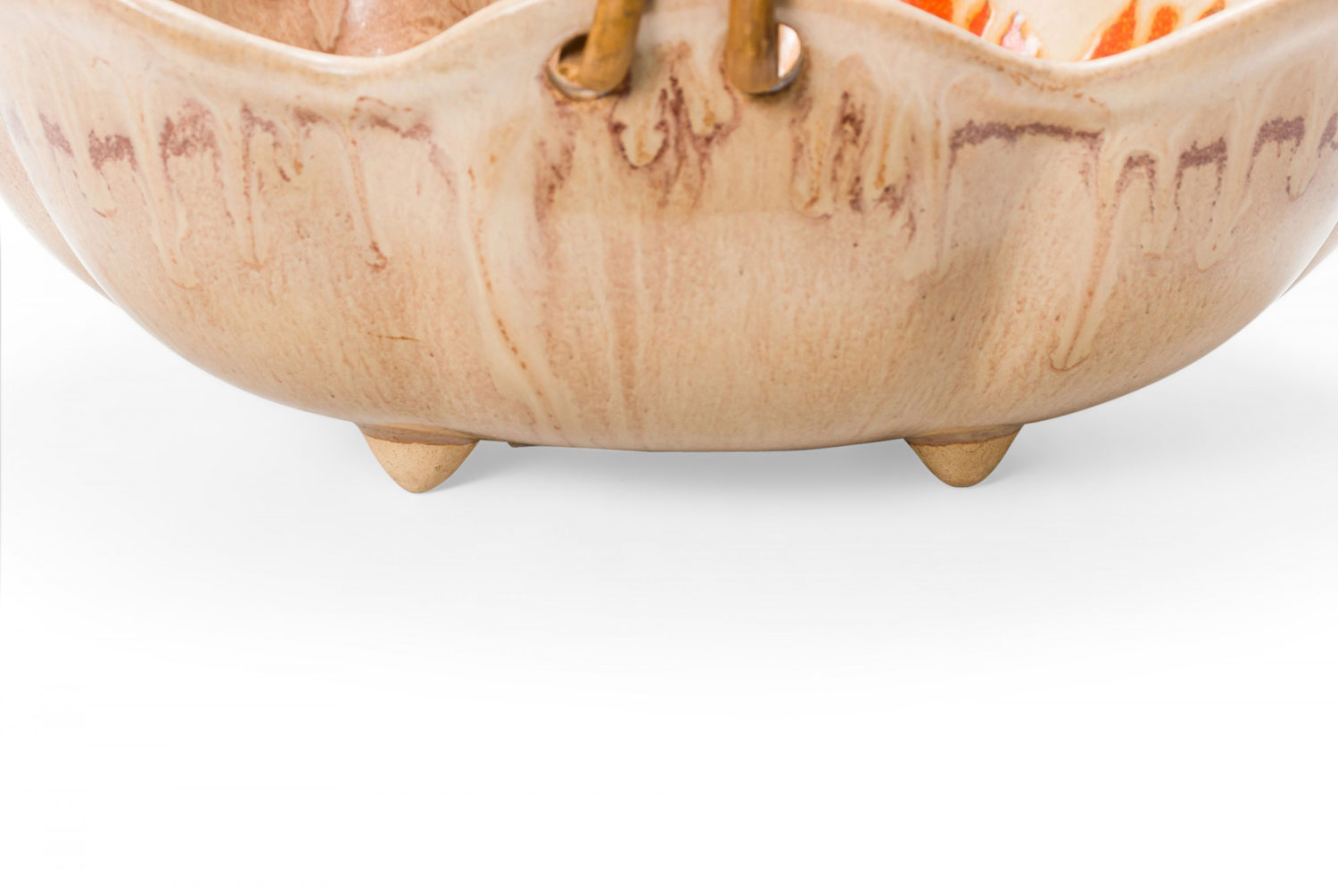 German Mid-Century Beige, Orange, and Brown Glazed Rattan Handle Ceramic Basket