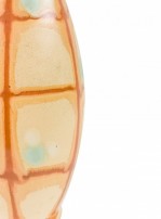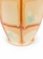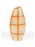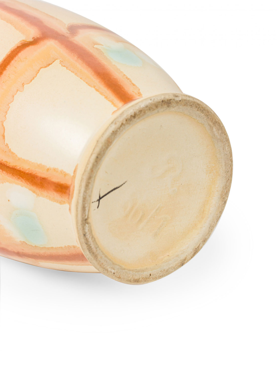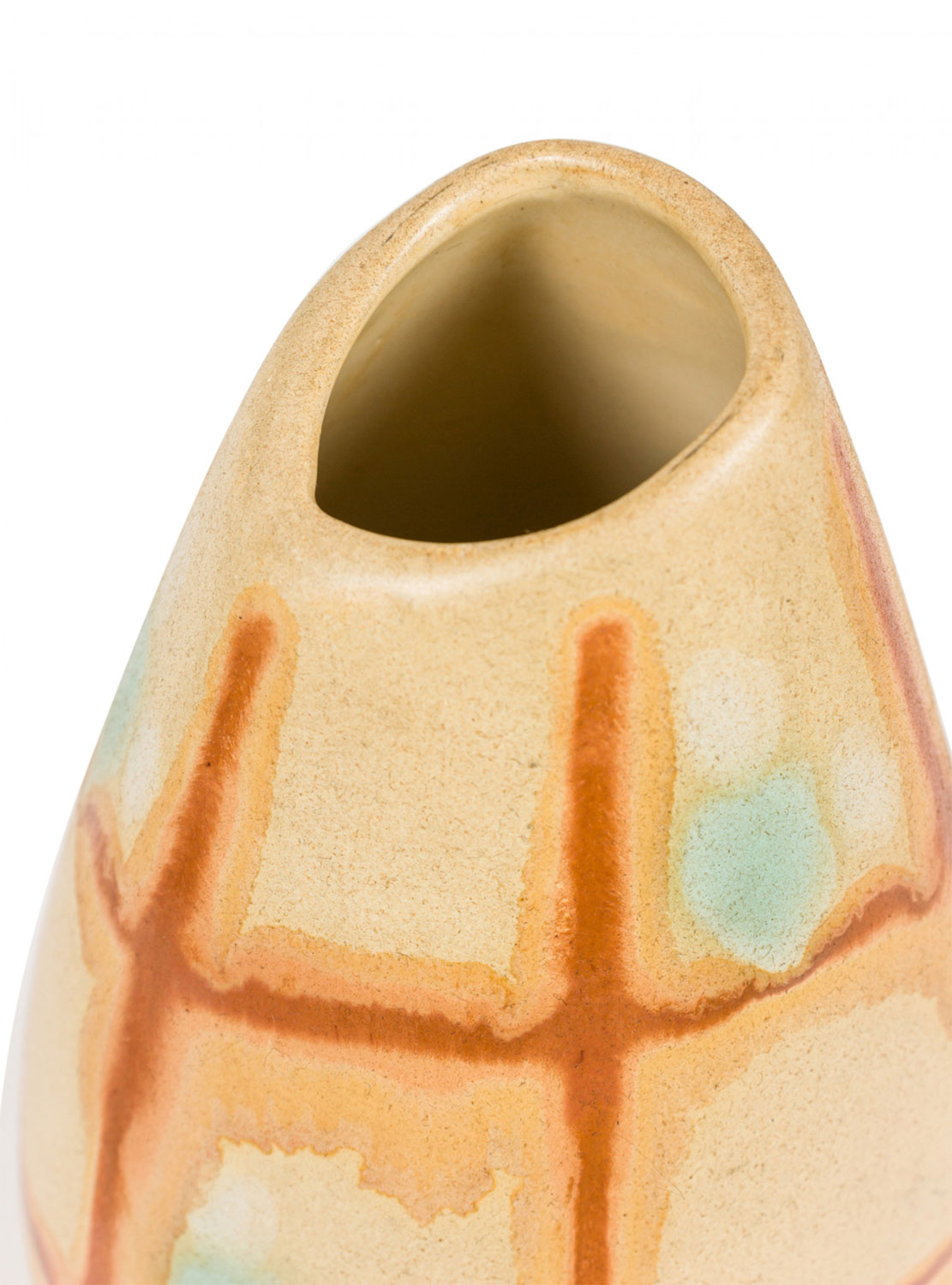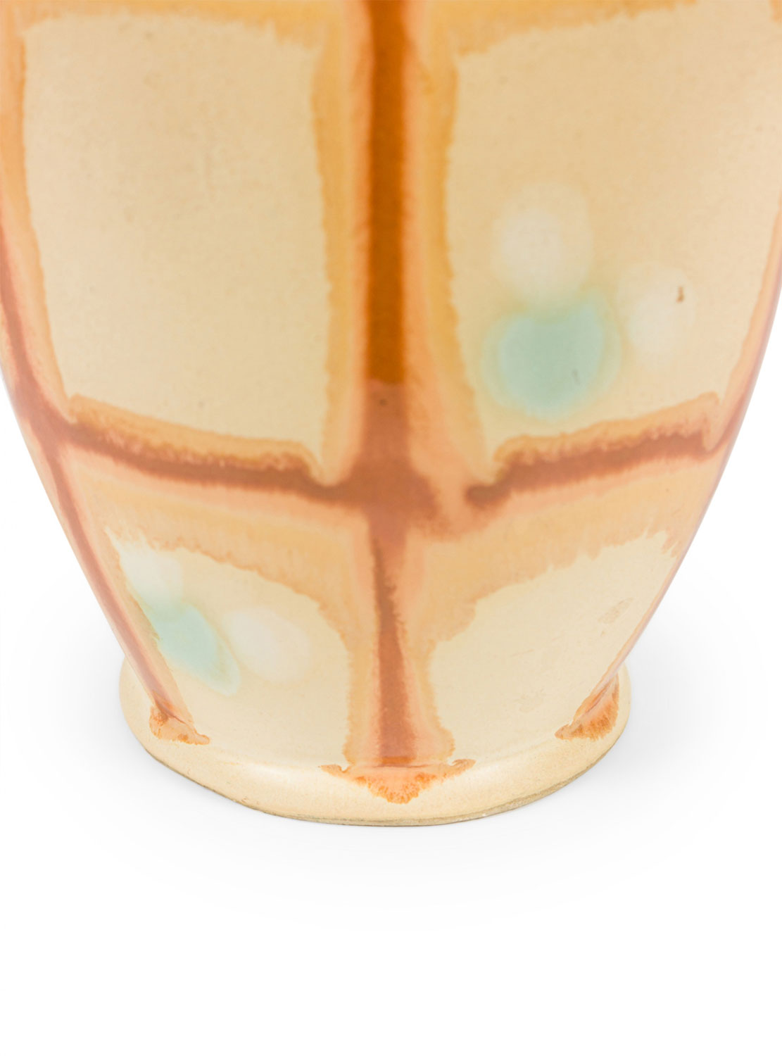 German Mid-Century Brown, Gold, and Green Grid Patterned Beige Glazed Ceramic Vase