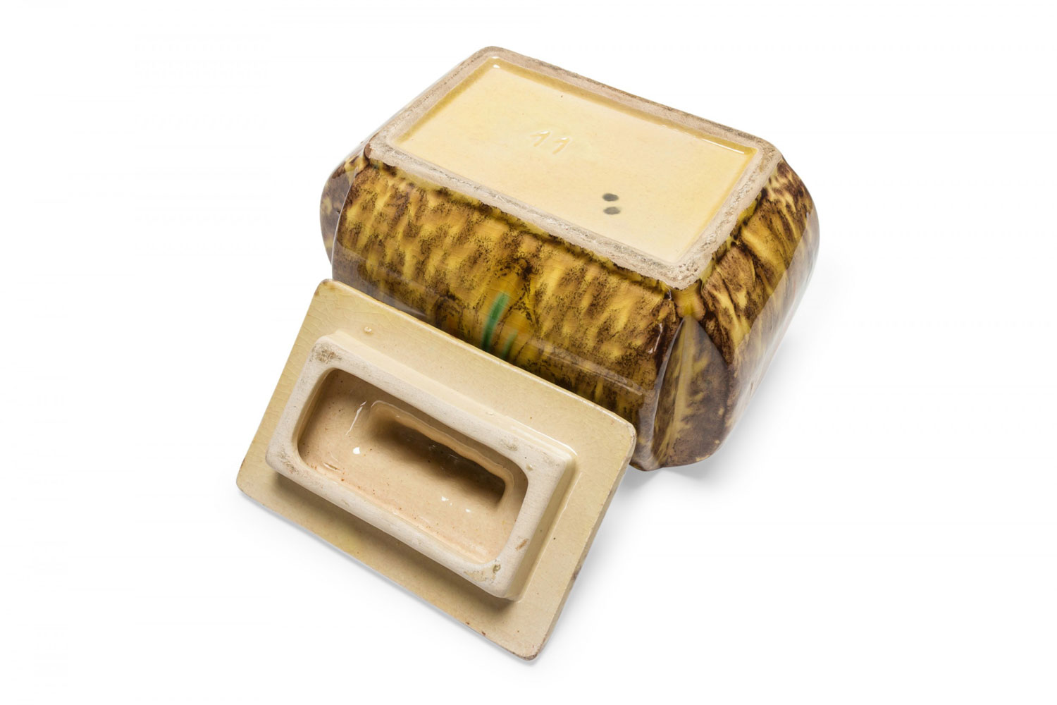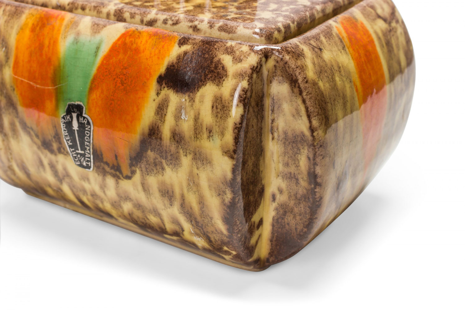 German Mid-Century Brown, Beige, Orange and Green Speckle Glazed Ceramic Lidded Box