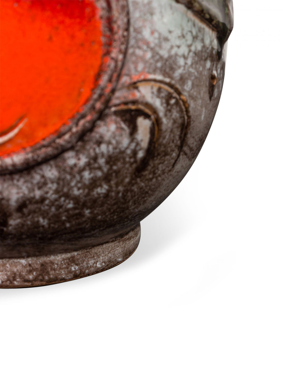 German Mid-Century Leaf and Fruit Design Orange, Green and Gray Glazed Ceramic Vase