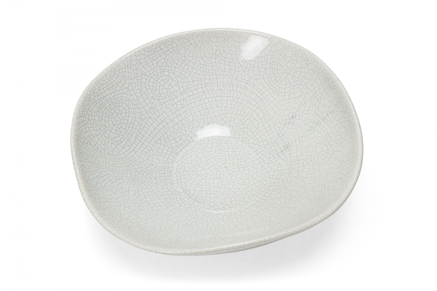 German Mid-Century White Crackle Finished Ceramic Bowl