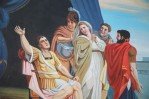Heroic Gladiator and Blue Tent Oil Painting on Canvas