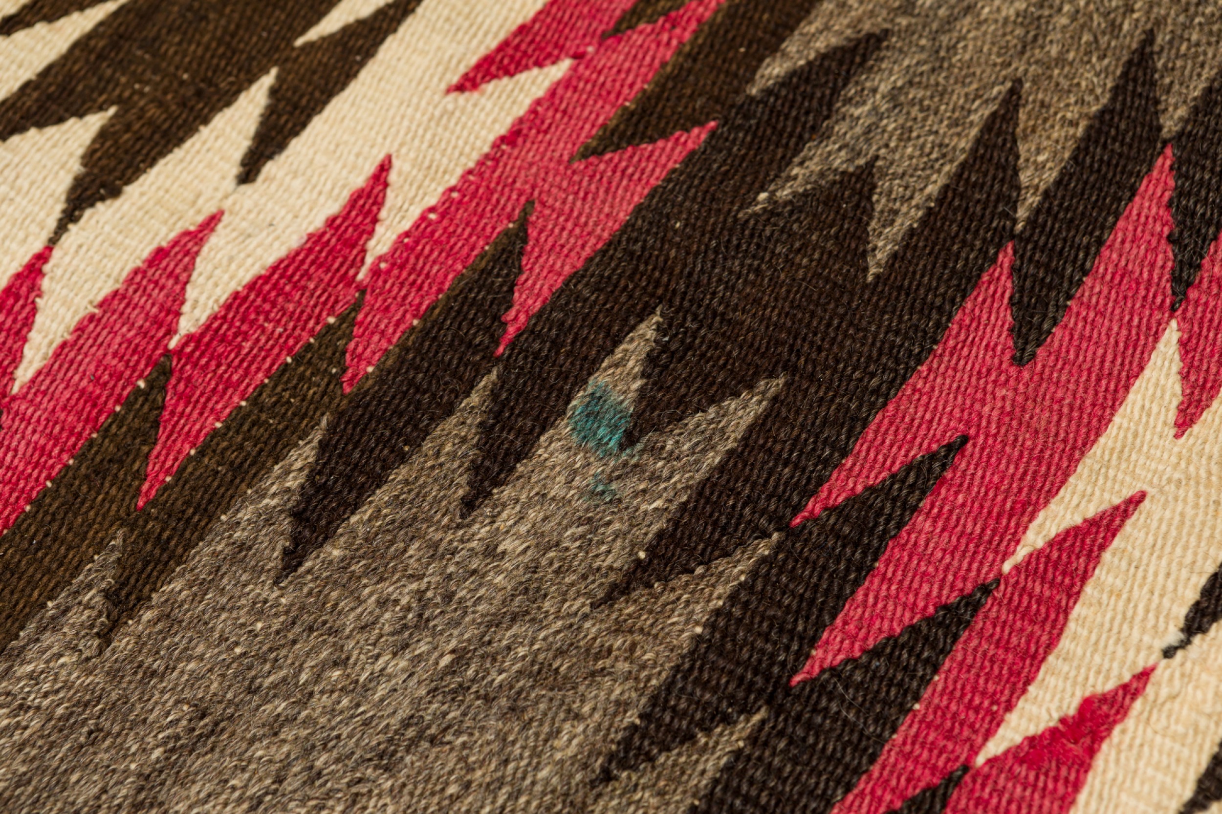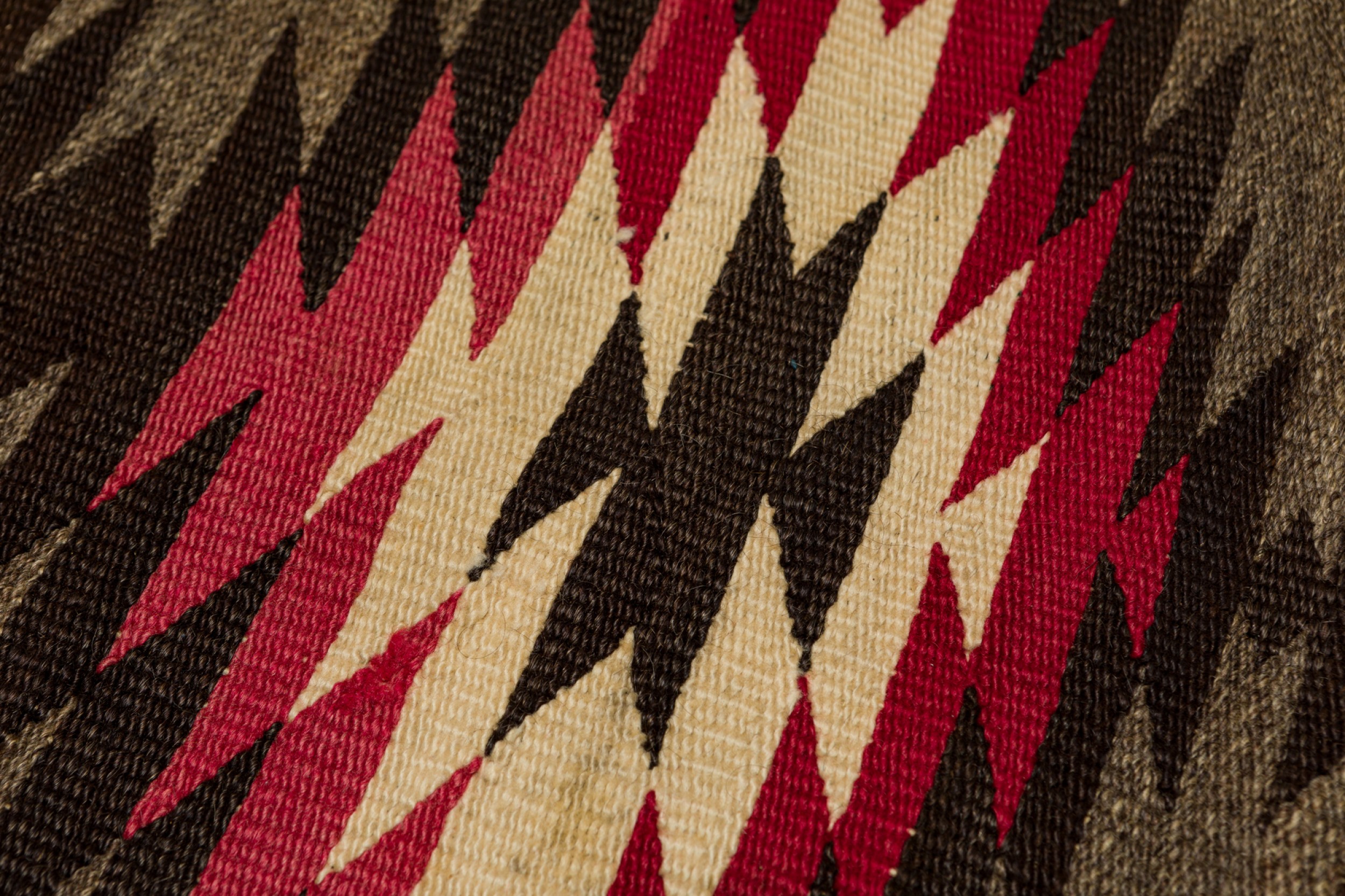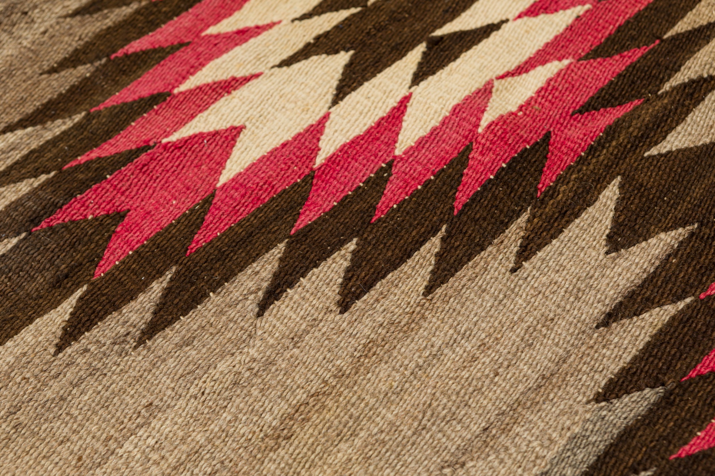 Indigenous American Woven Patterned Brown and Pink Rectangular Rug