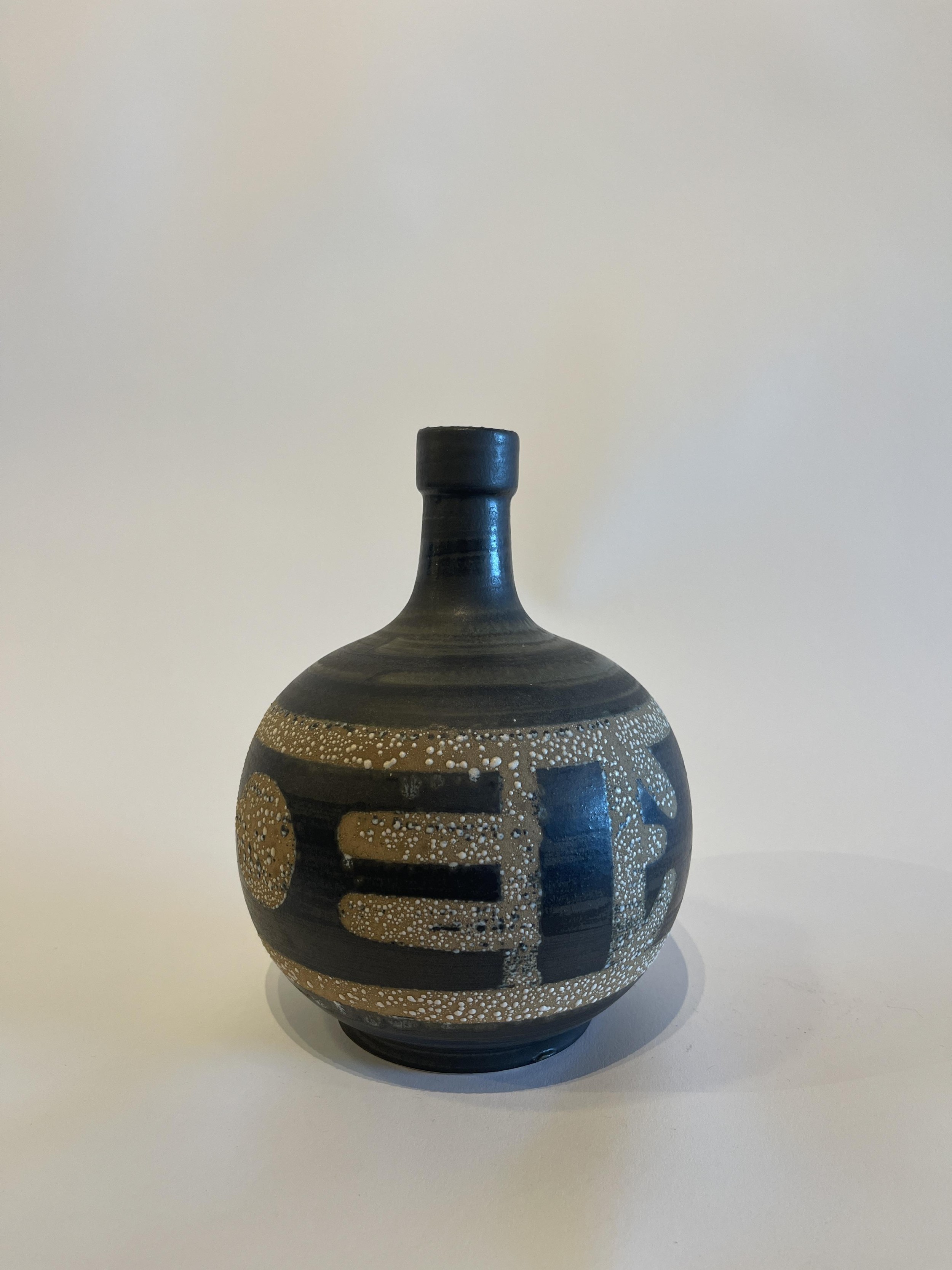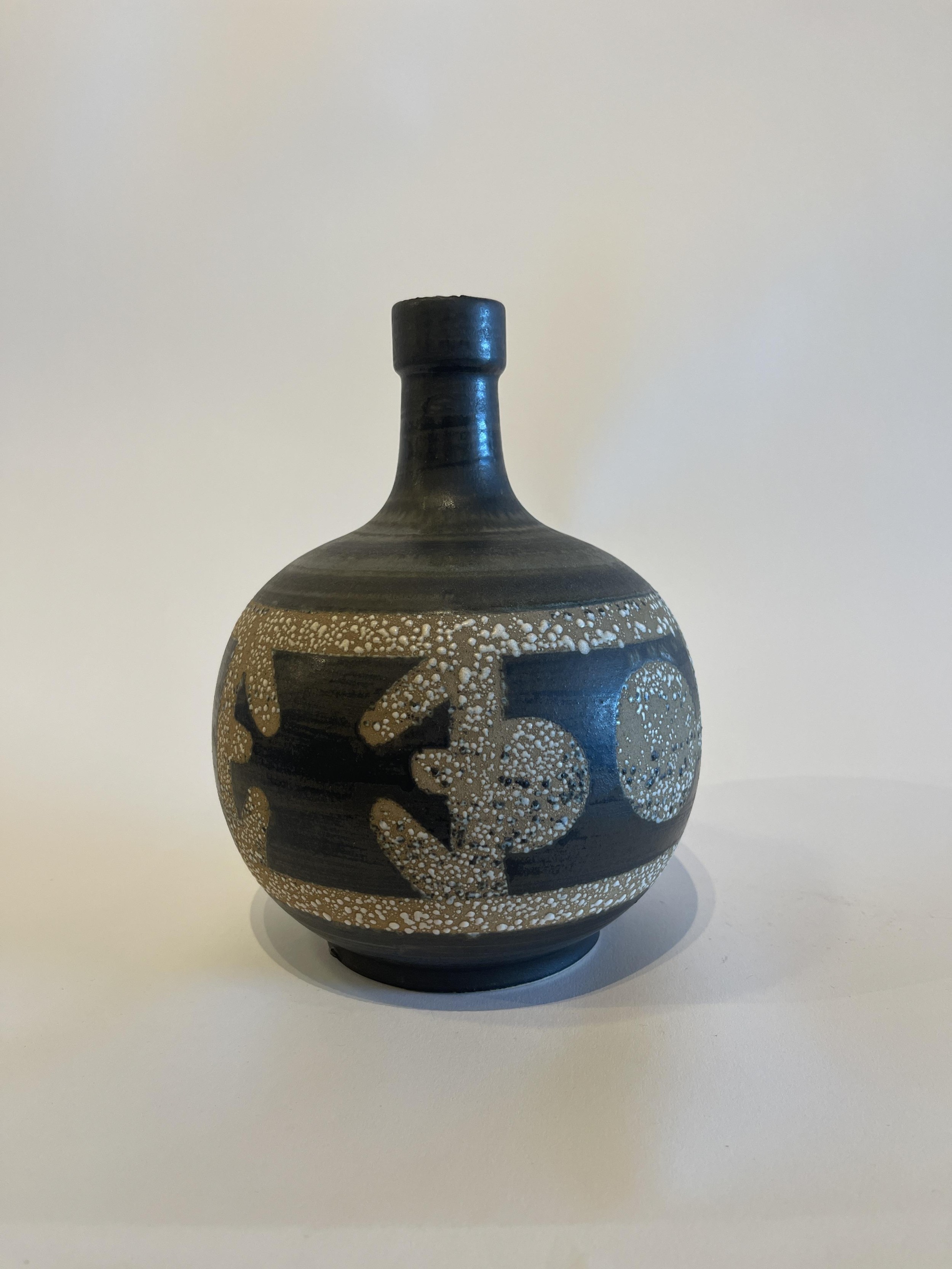 Israeli Mid-Century Lapid Lava Glazed Ceramic Vase with a bulbous base and narrow neck (companion pieces REG4741A-N)