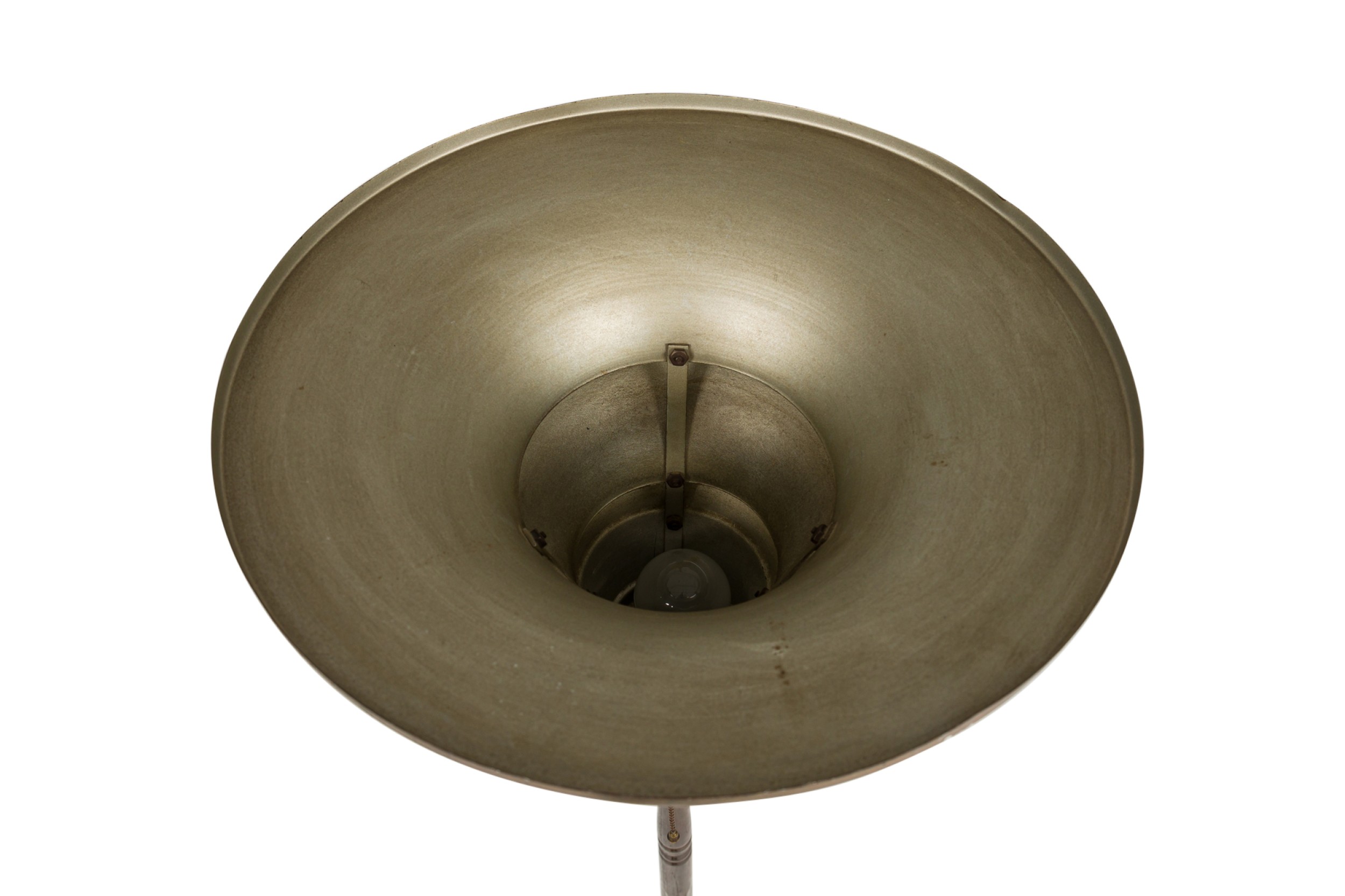 Italian Art Deco machine age style standing floor lamp with a metal 3-tier funnel like design