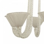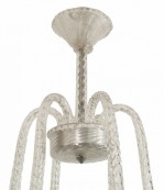 Italian Mid-Century (1940s) chandelier with 6 clear scroll form swirl arms supporting internal bubble glass fluted cone shaped shades with an acid etched & textured interior (by SEGUSO)