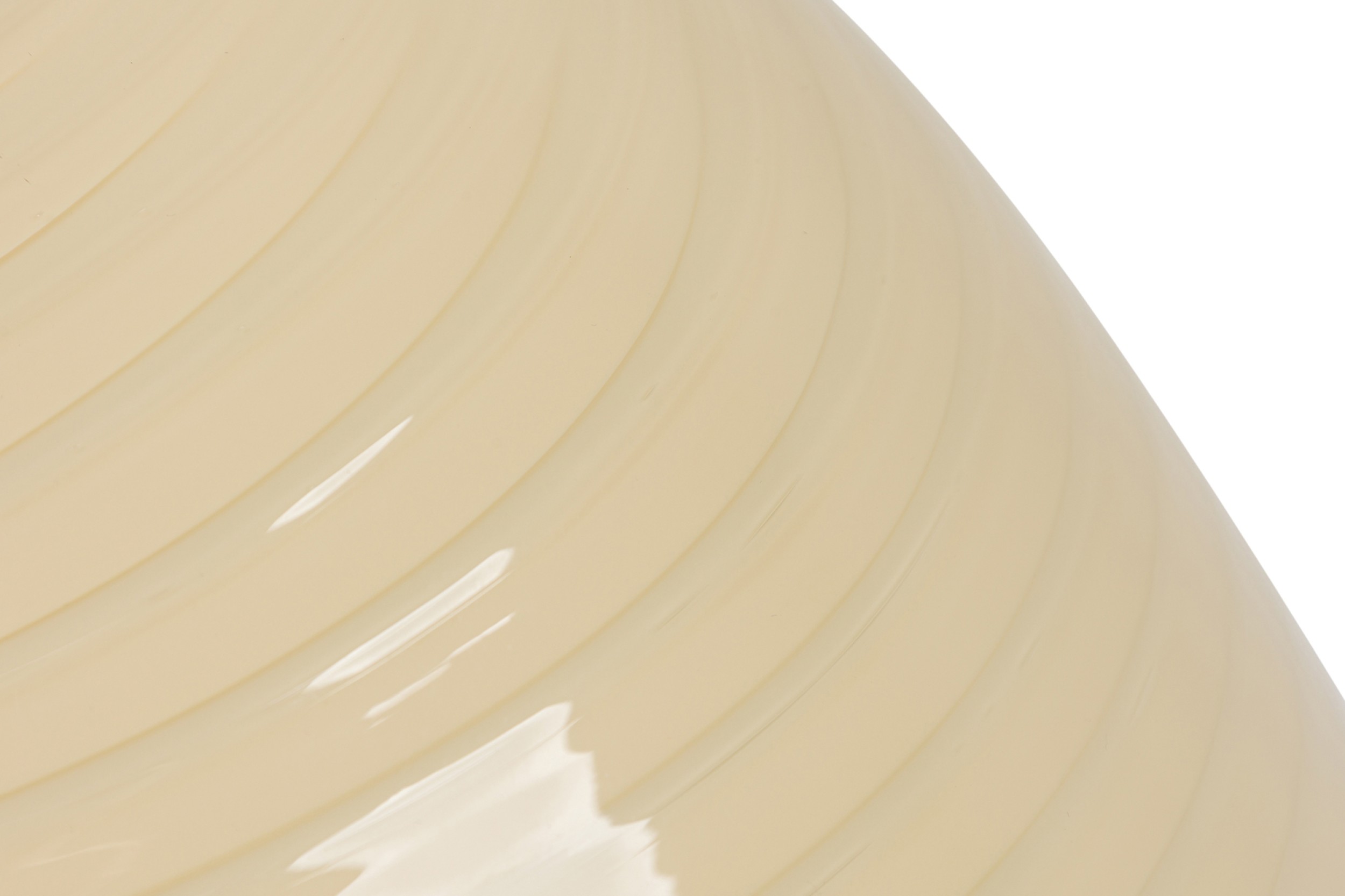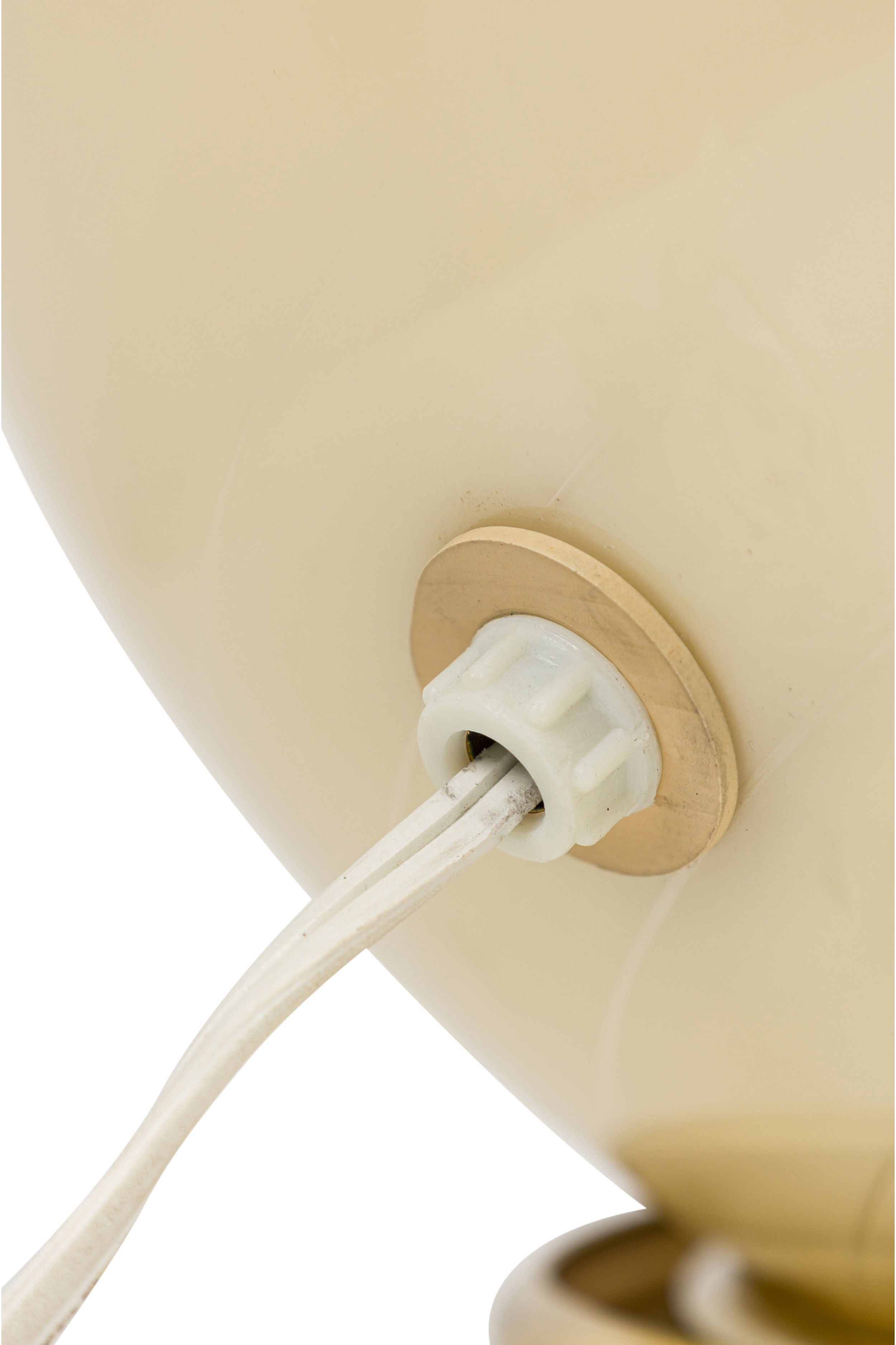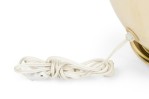 Italian Mid-Century Murano glass egg lamp with a golden spiral hue design and sitting on a stepped brass base