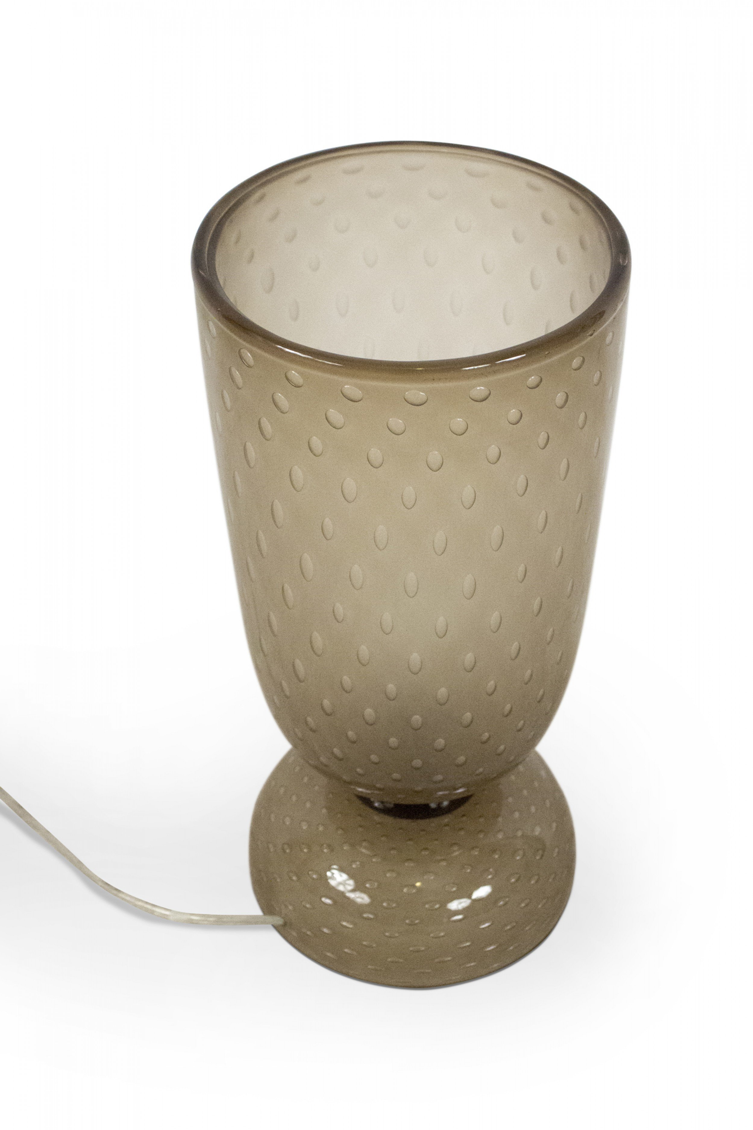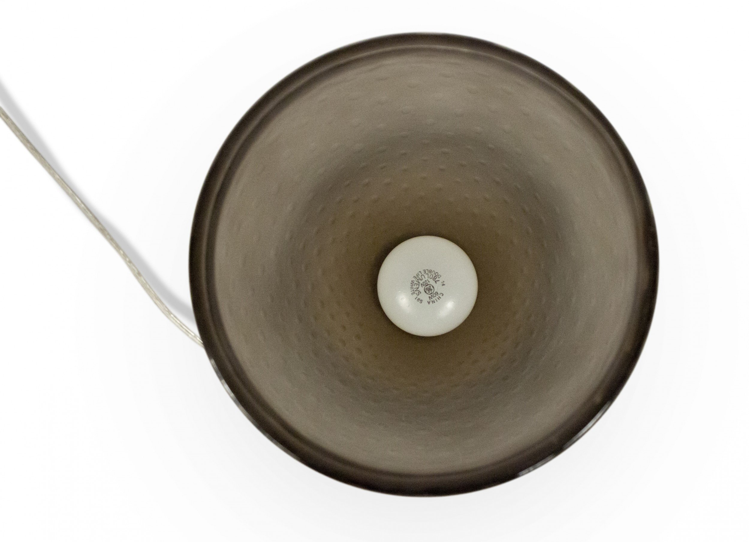 Italian Mid-Century Murano chalice shaped smoked blown bubble glass table lamp / torchiere with a convex base and tapered glass shade. (MURANO)