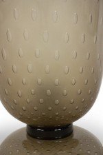 Italian Mid-Century Murano chalice shaped smoked blown bubble glass table lamp / torchiere with a convex base and tapered glass shade. (MURANO).