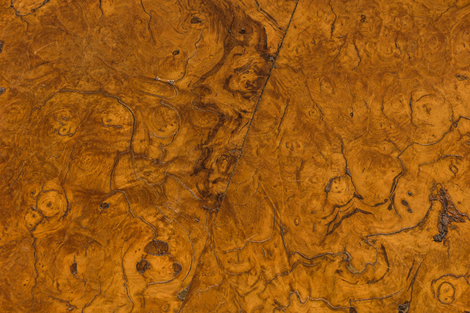 Style: Mid-Century Materials & Techniques: Burl, veneer, wood Category: Tables Good; Wear consistent with age and use