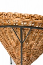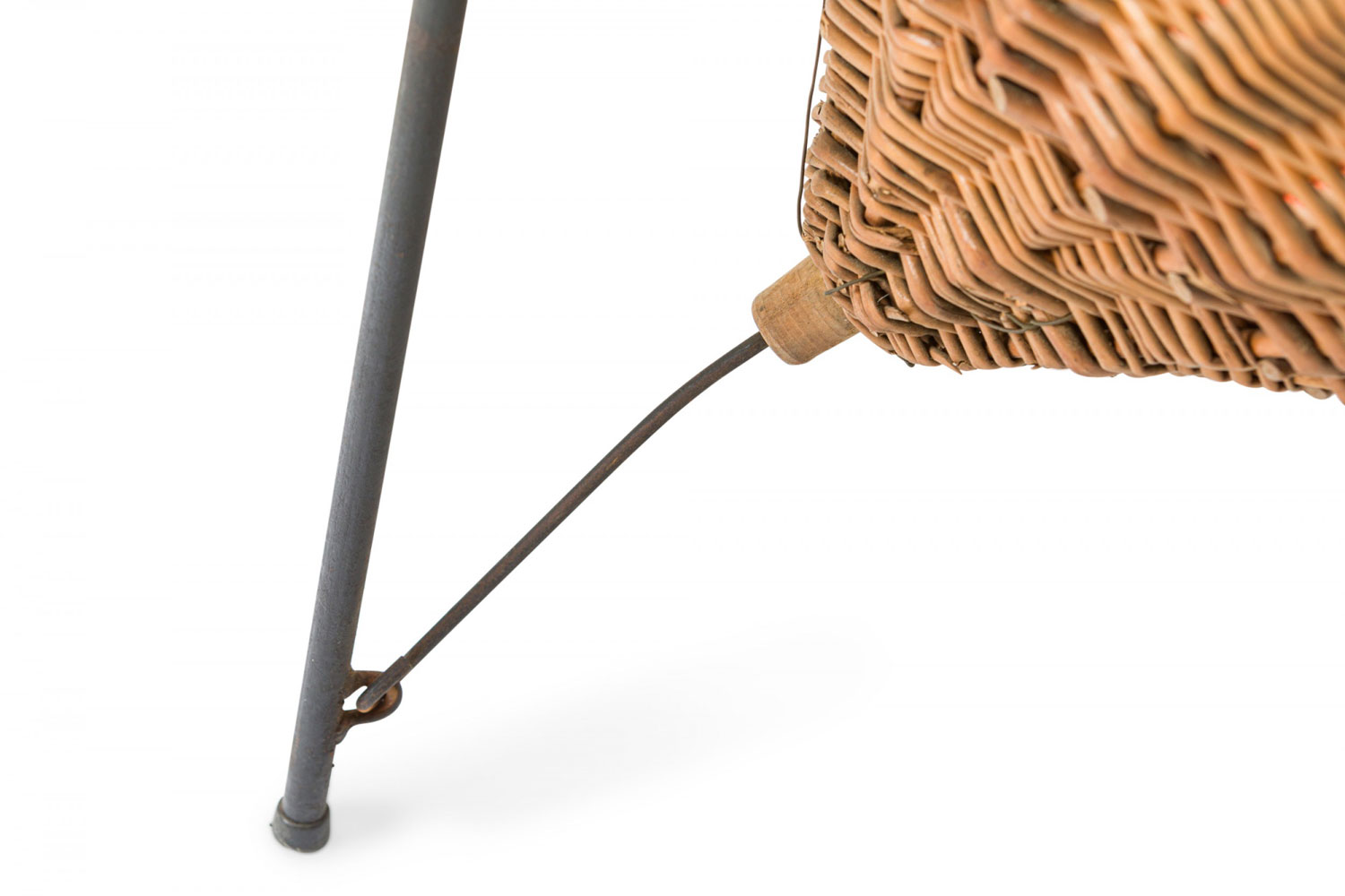 Style: Mid-Century Materials & Techniques: Iron, metal, wicker, wood Category: Seating Good; Wear consistent with age and use