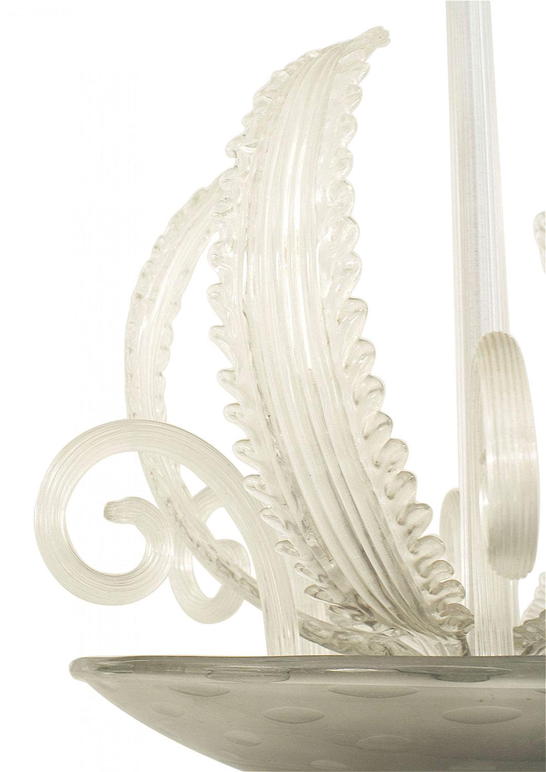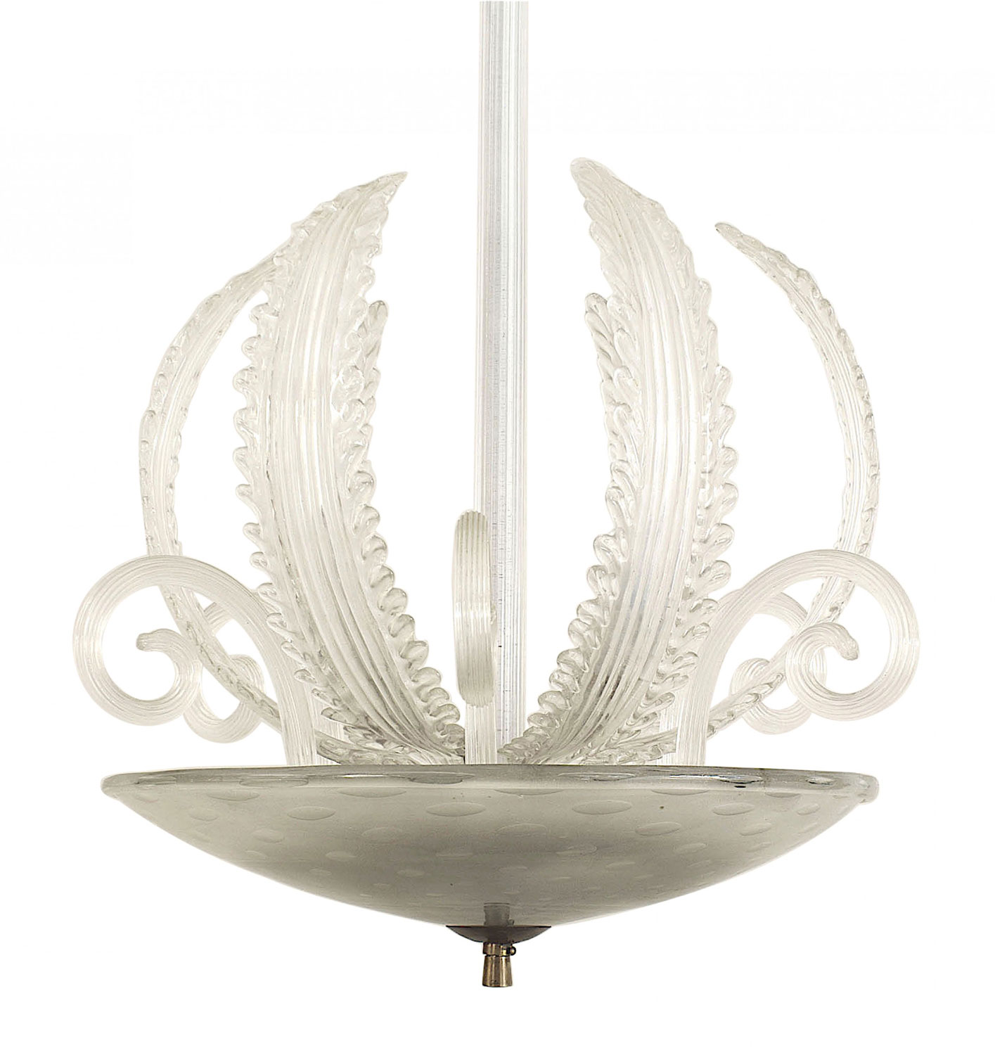Barovier et Toso Italian Murano Frosted Glass Bowl and Feather Chandelier
