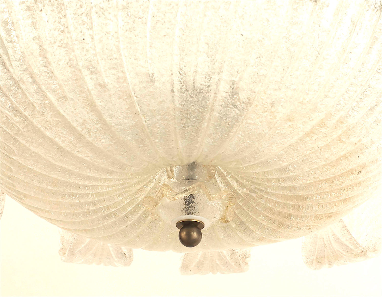 Italian Mid-Century (1940s) Murano gold dusted and textured glass chandelier with 12 large feather form arm emanating from a large internal light bowl base suspended by a 2-tier swirl centerpost. (BAROVIER ET TOSO)