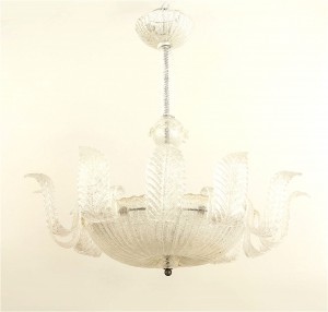 Barovier Et Toso Italian Murano Gold Dusted Glass Feather Chandelier