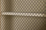 Italian Neo-Classic monumental off-white painted and gilt trimmed breakfront / bookcase having 2 upper and 2 lower doors with a wire mesh centering a recessed platform with column form decorated sides and carved capitals.