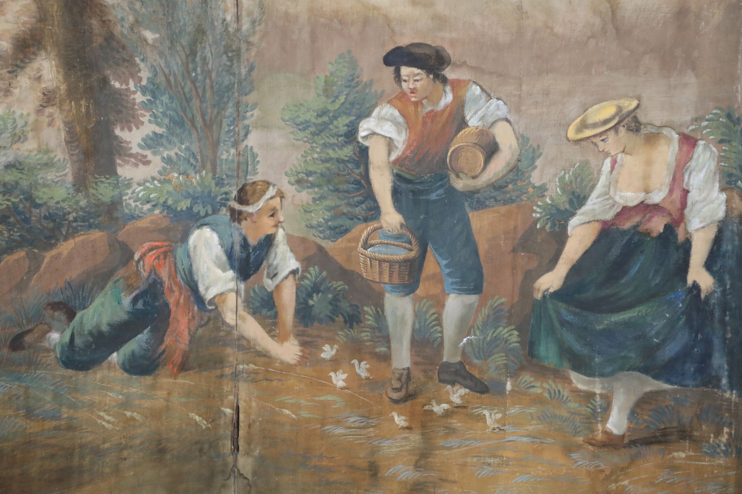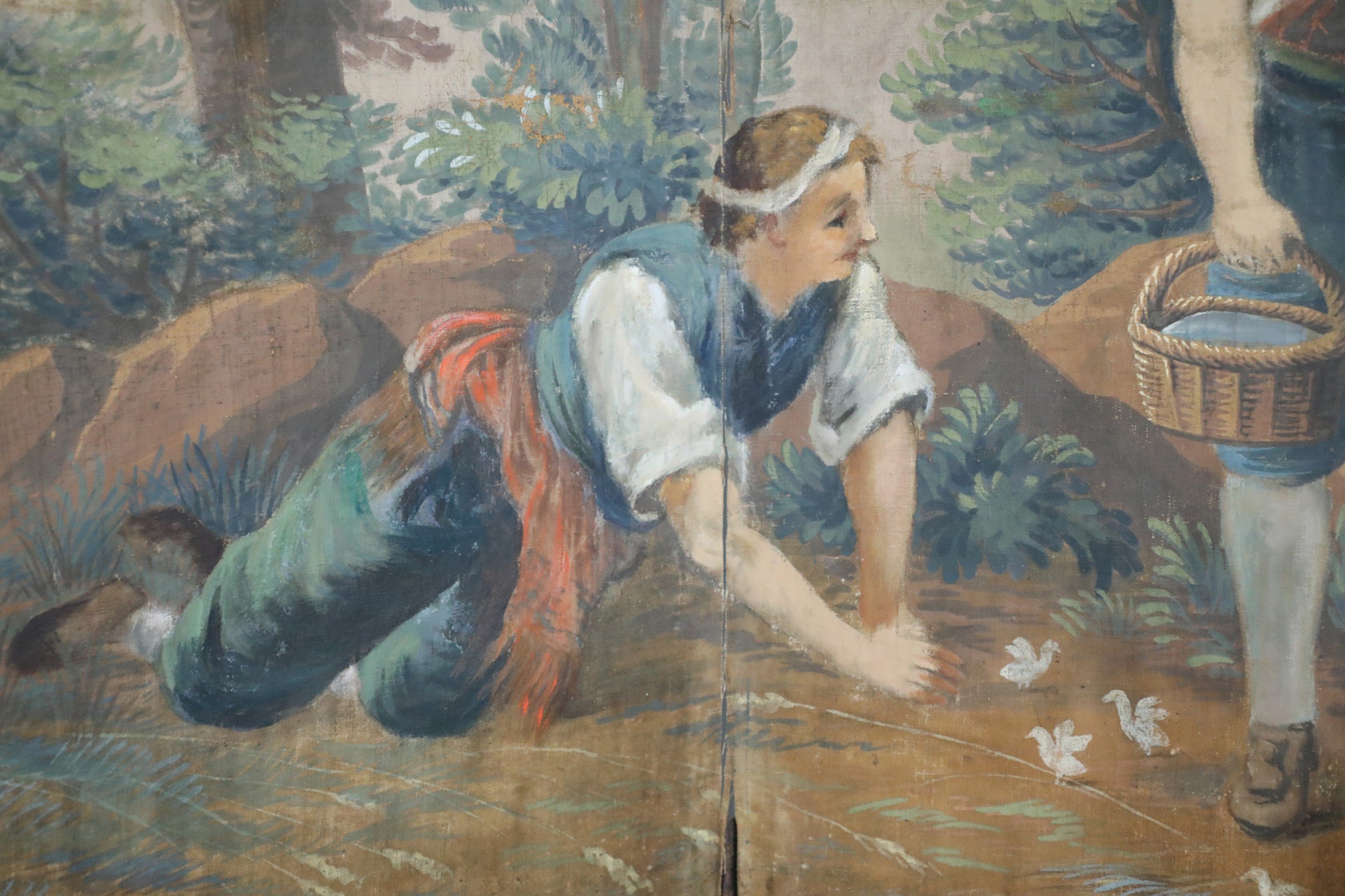 Italian Neo-Classical Style Figurative Painting 6-Paneled Folding Screen