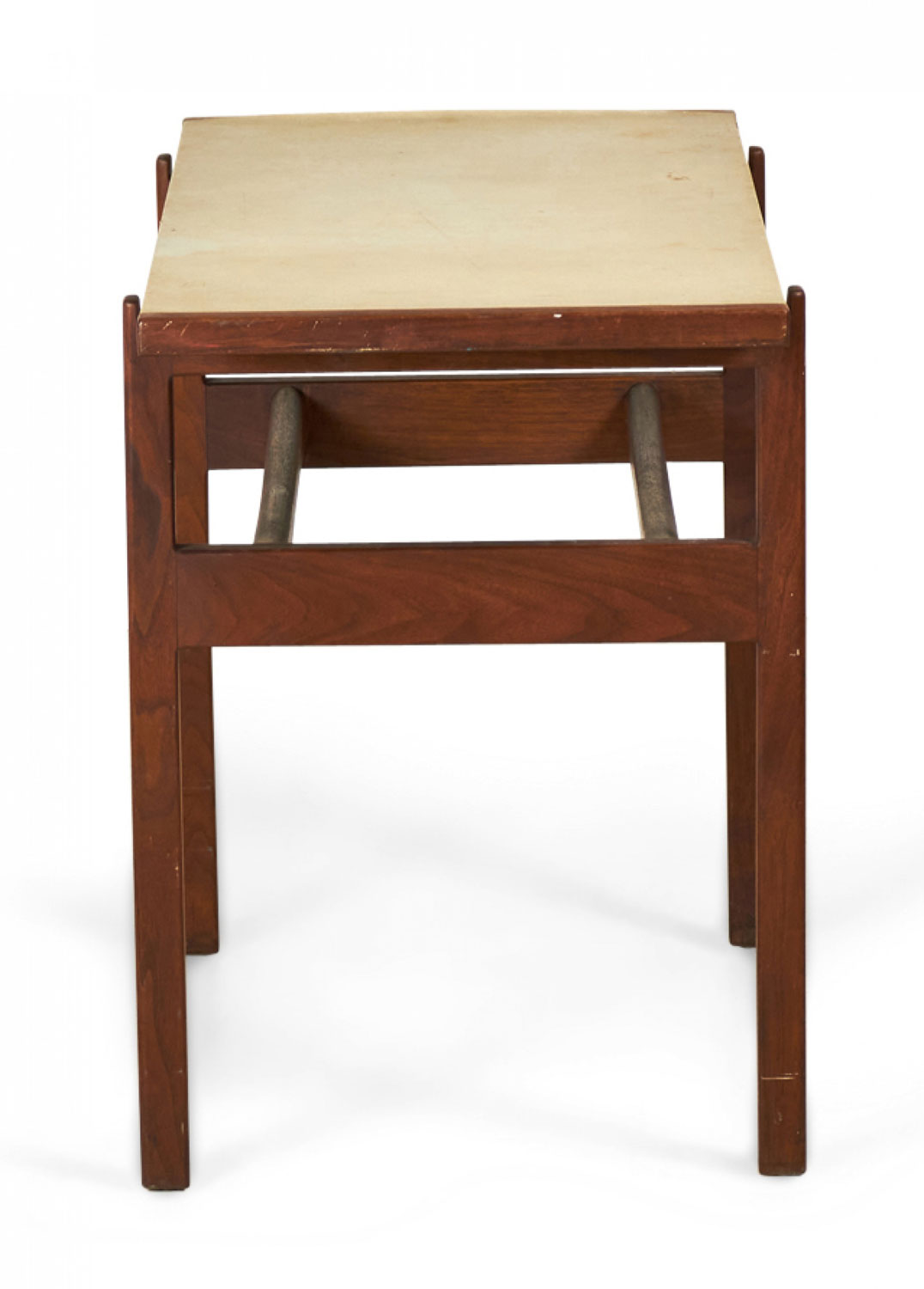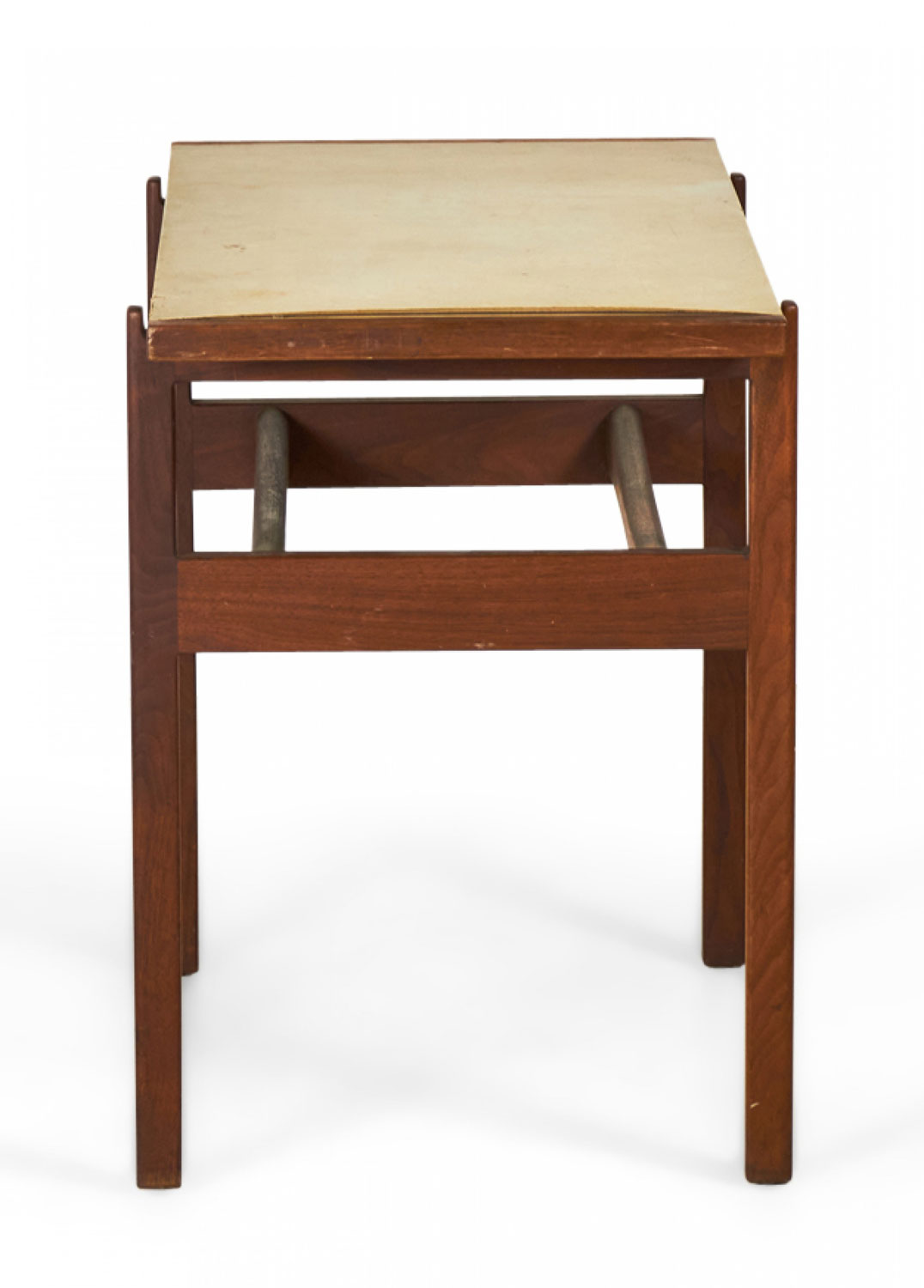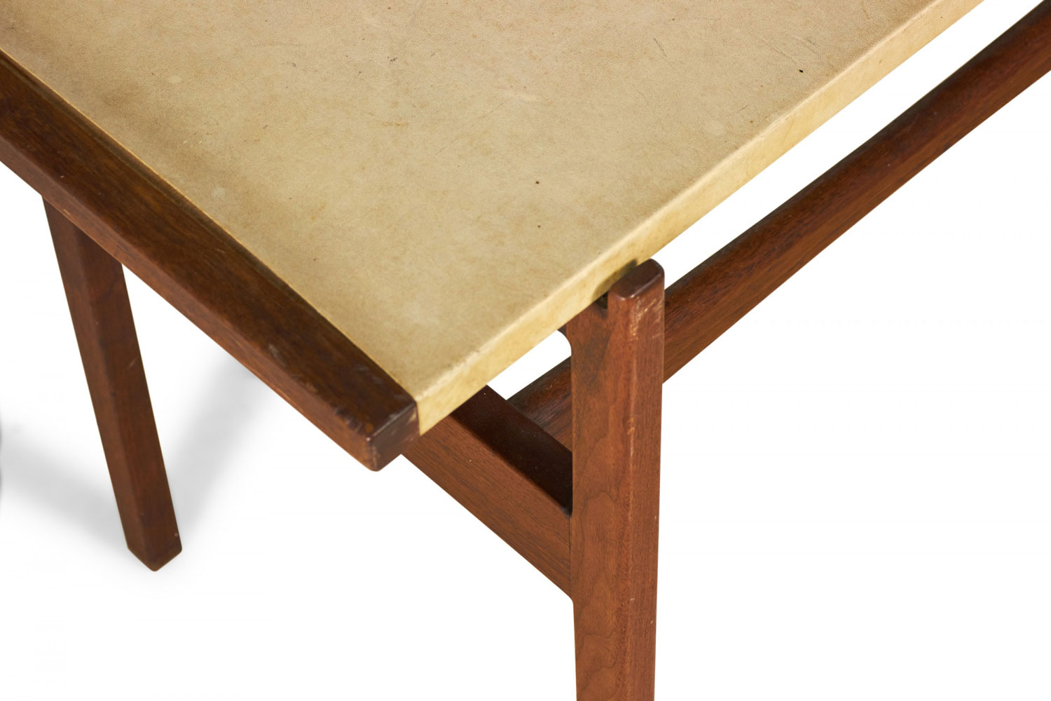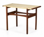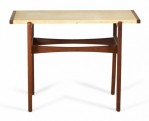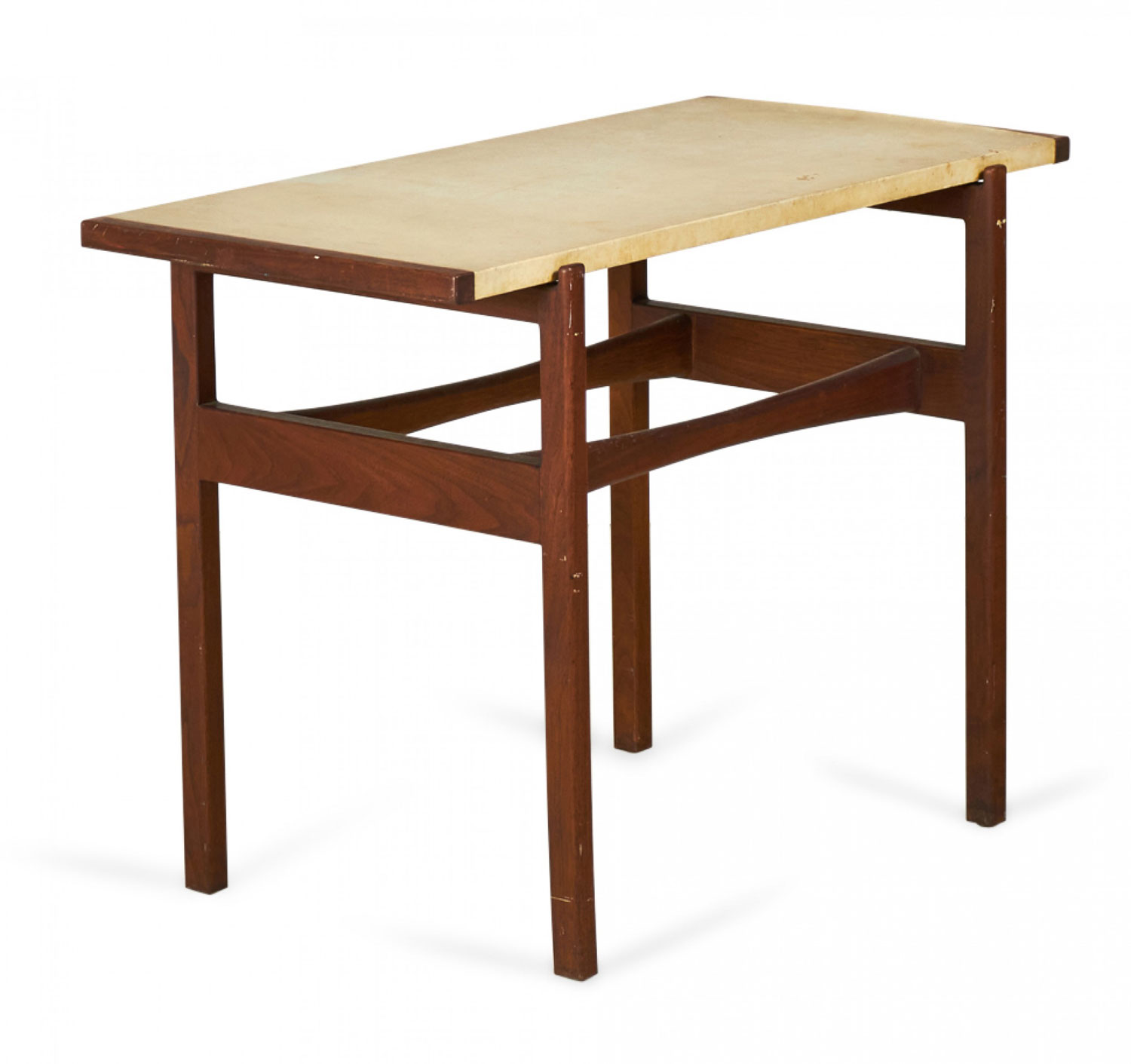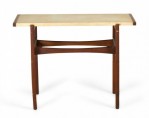 Jens Risom Danish Mid-Century Beige Leather and Walnut Console Table