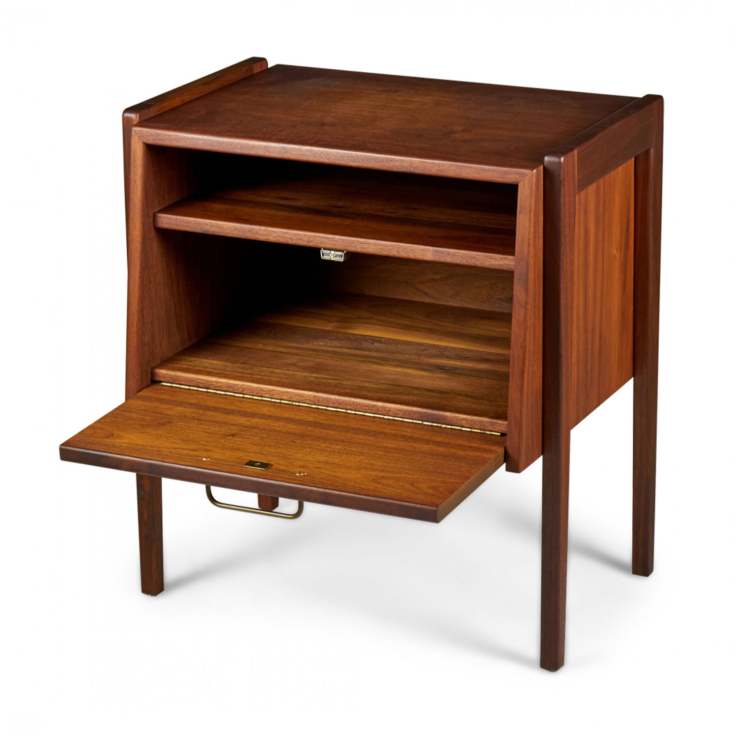 Jens Risom Danish Mid-Century Fall-Front Walnut Bedside Table / Commode