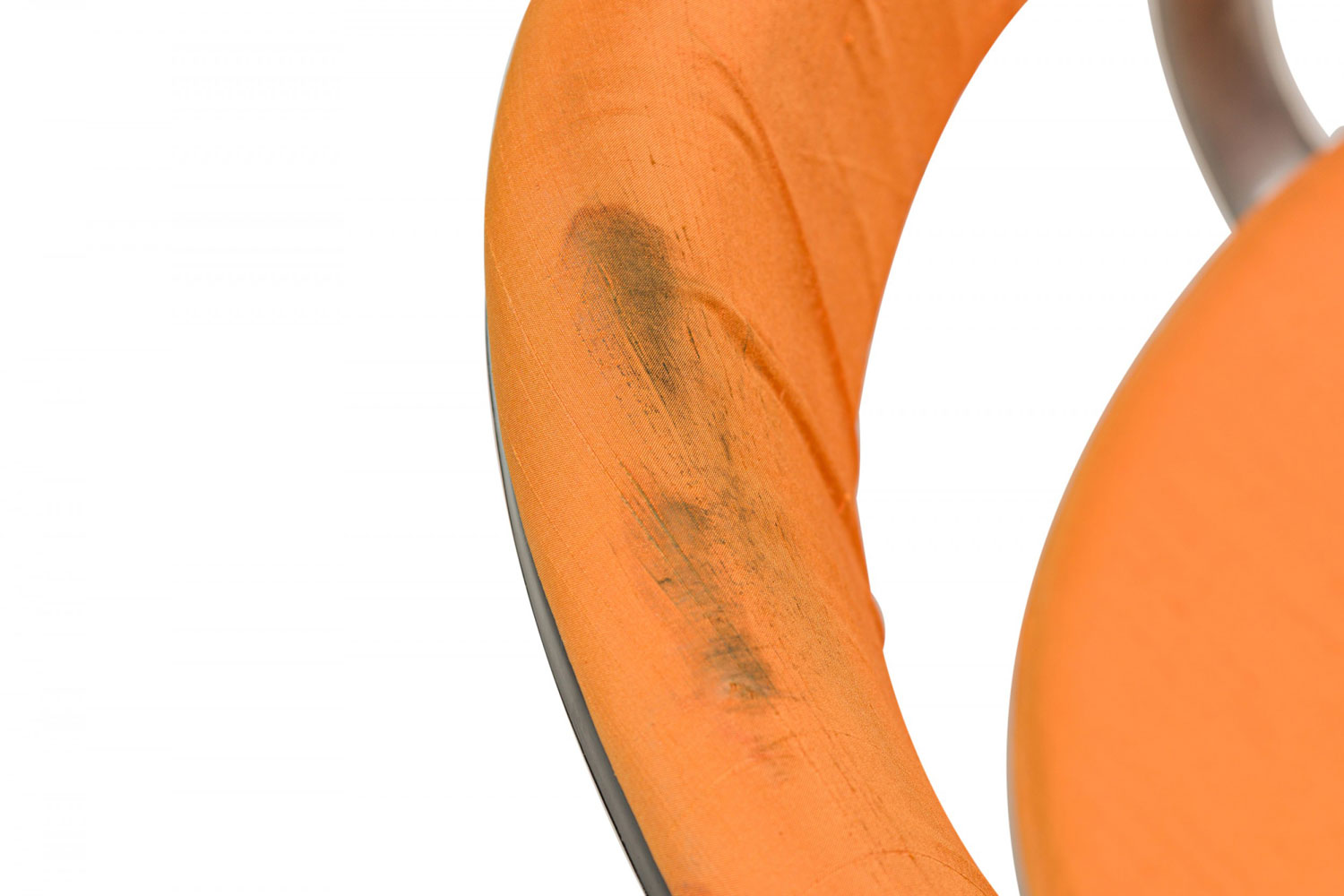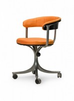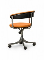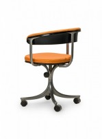 Jørgen Rasmussen Danish Mid-Century Orange Upholstery and Silver Metal Rolling Office Chair