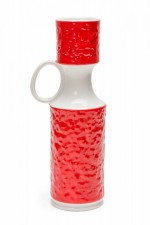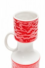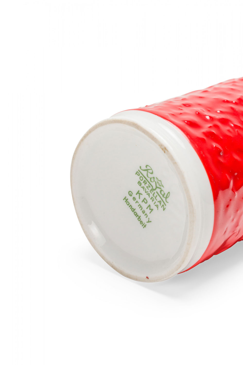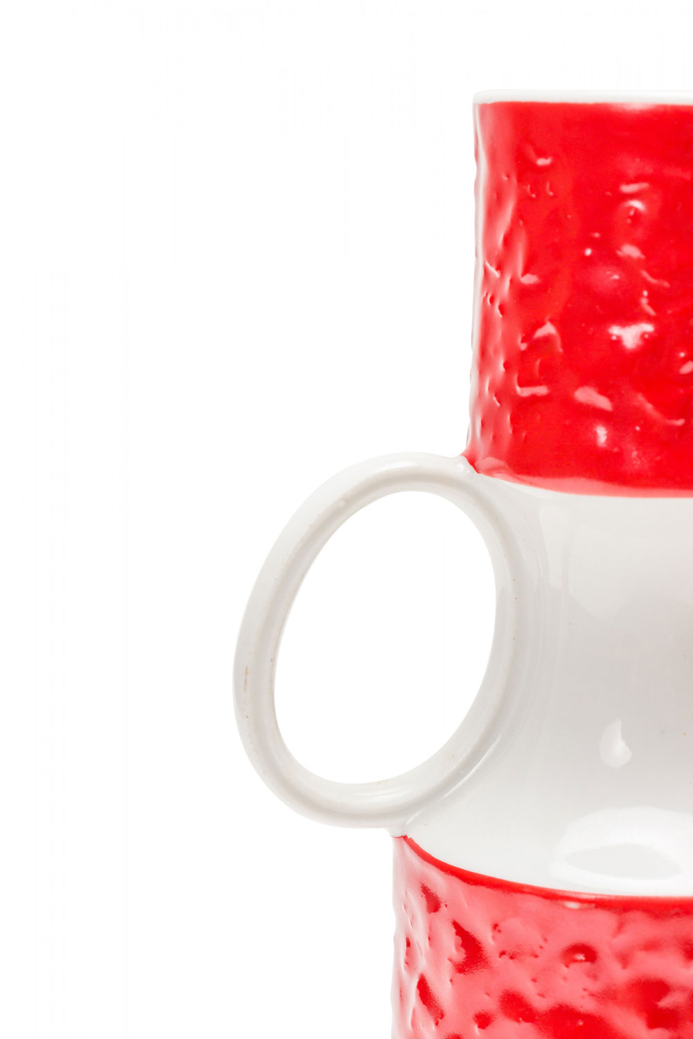 KPM West German Mid-Century Red and White Textured Porcelain Vase with Handle
