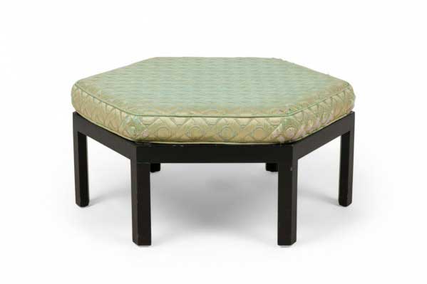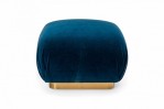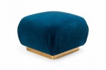 American Mid-Century 'Souffle' ottoman with blue velvet upholstery with a square gilt steel base. (KARL SPRINGER)