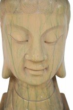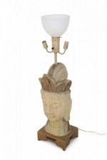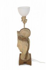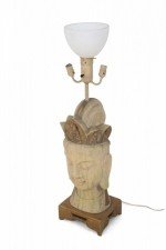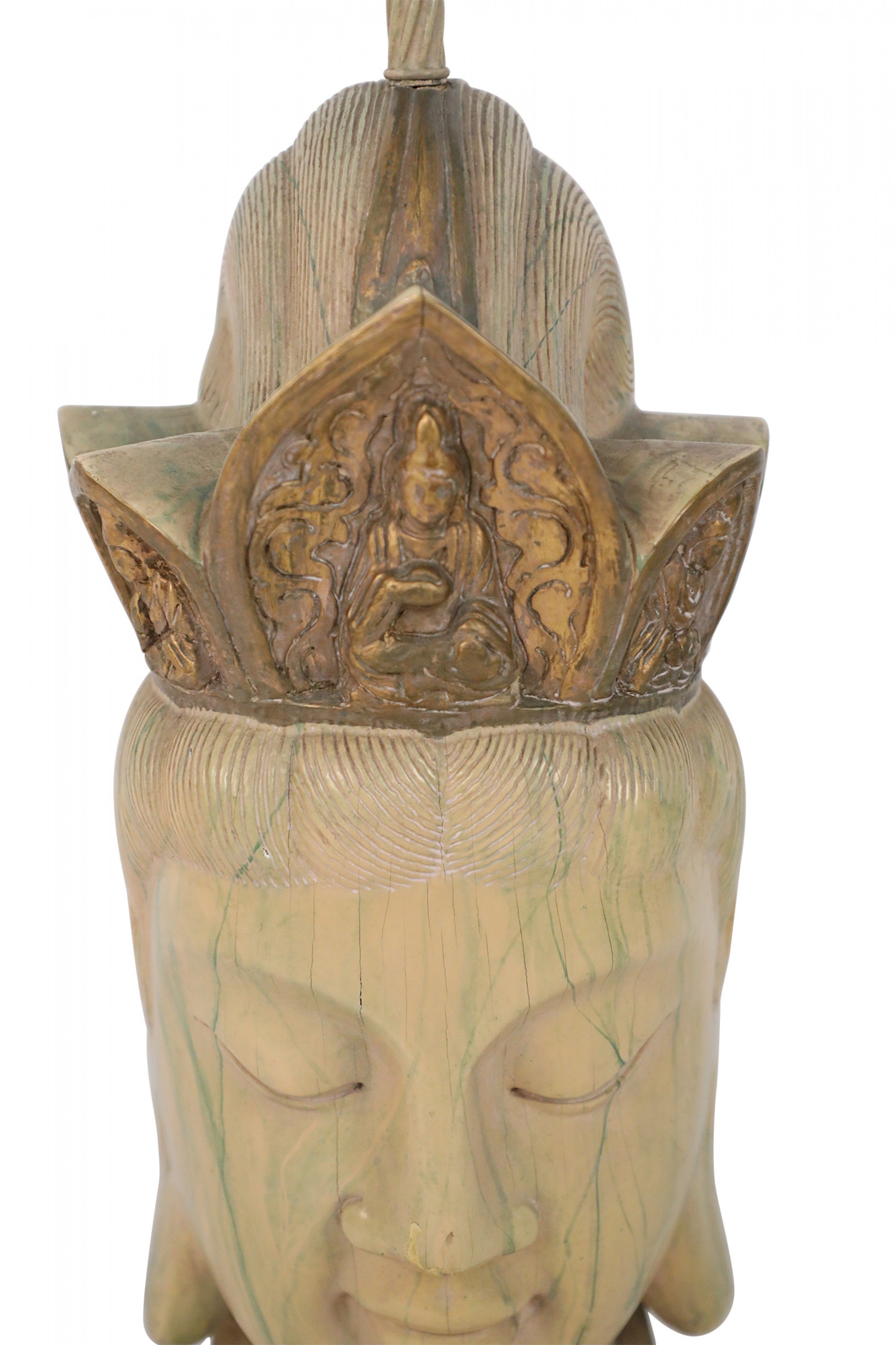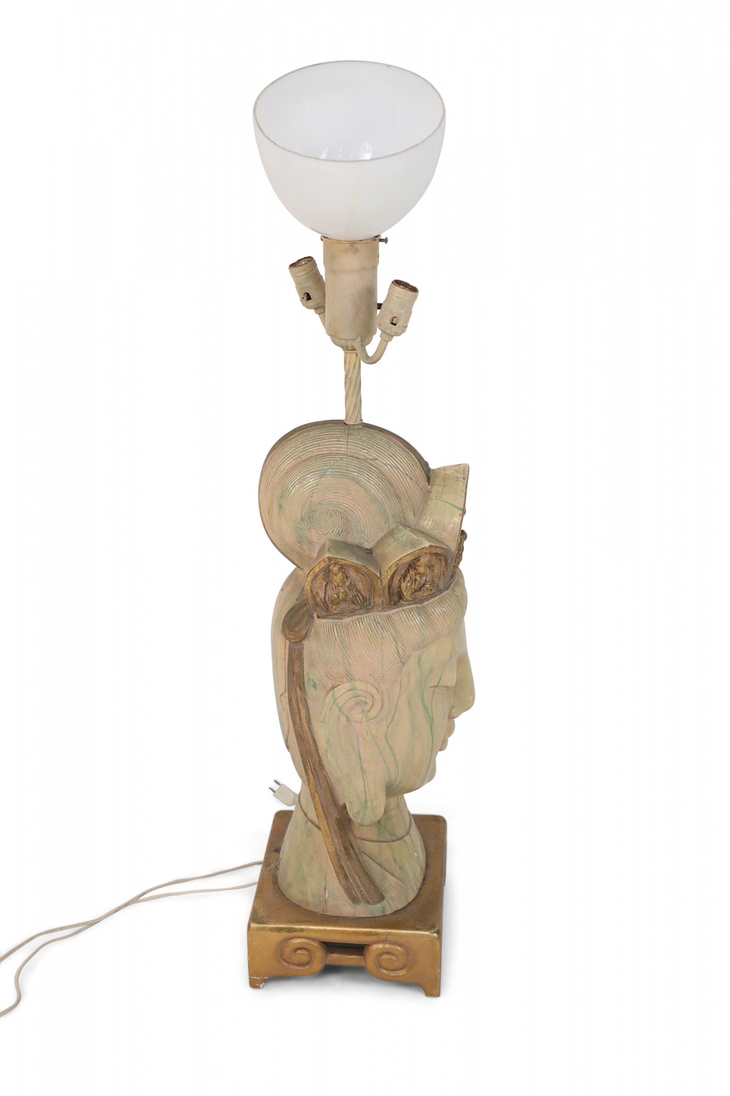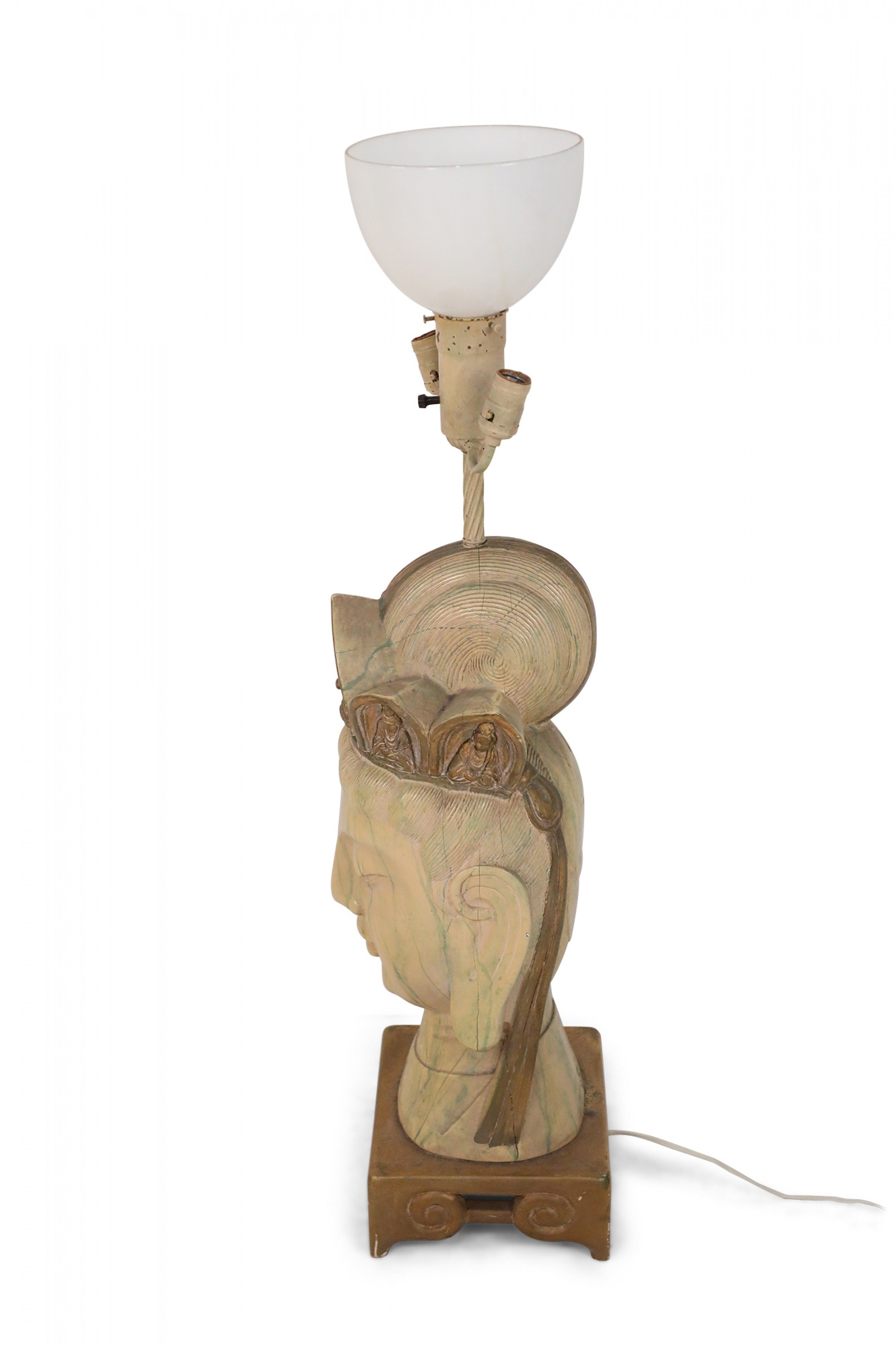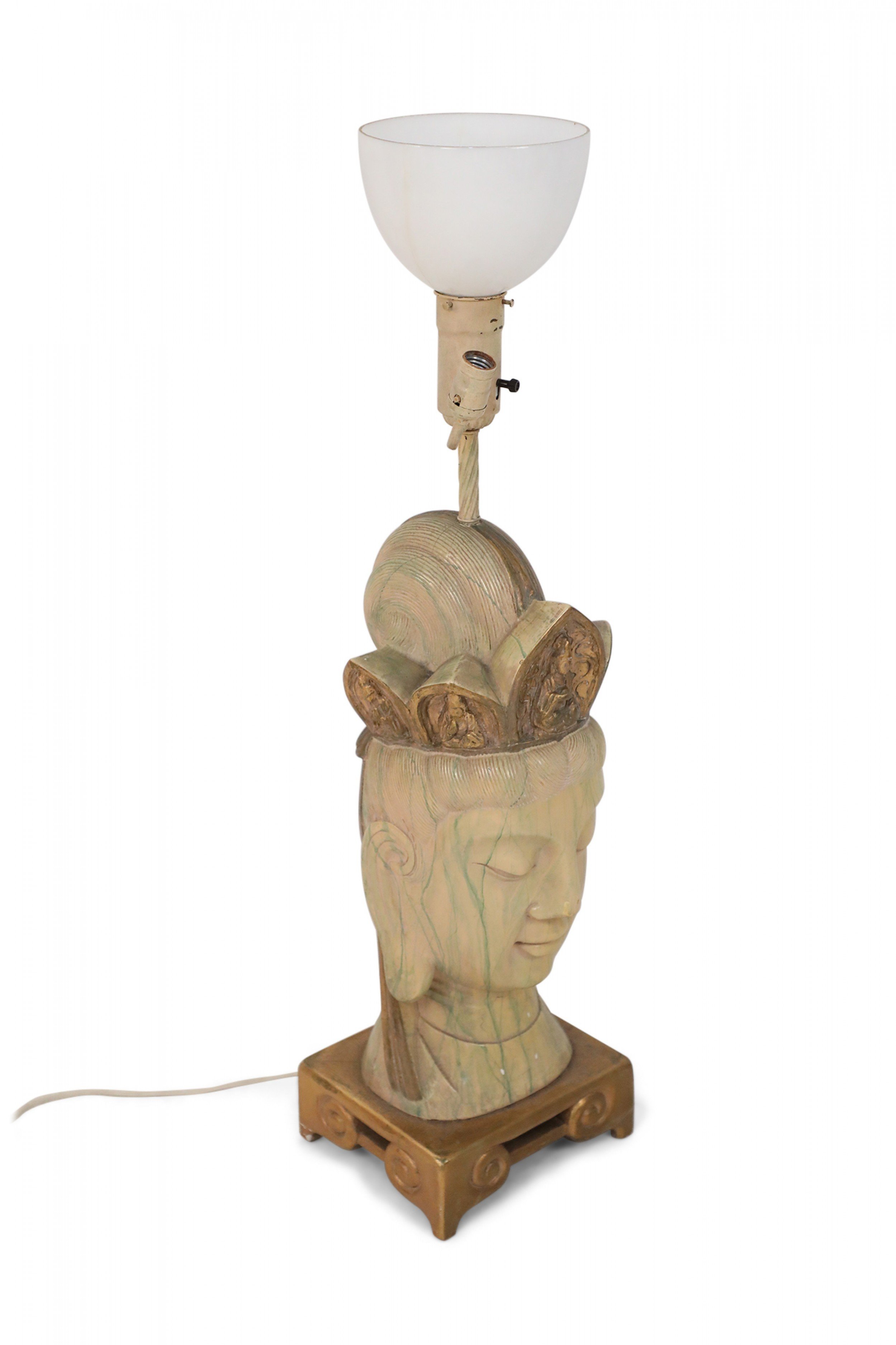 Large Chinese Carved and Painted Wooden Buddha Head Table Lamp