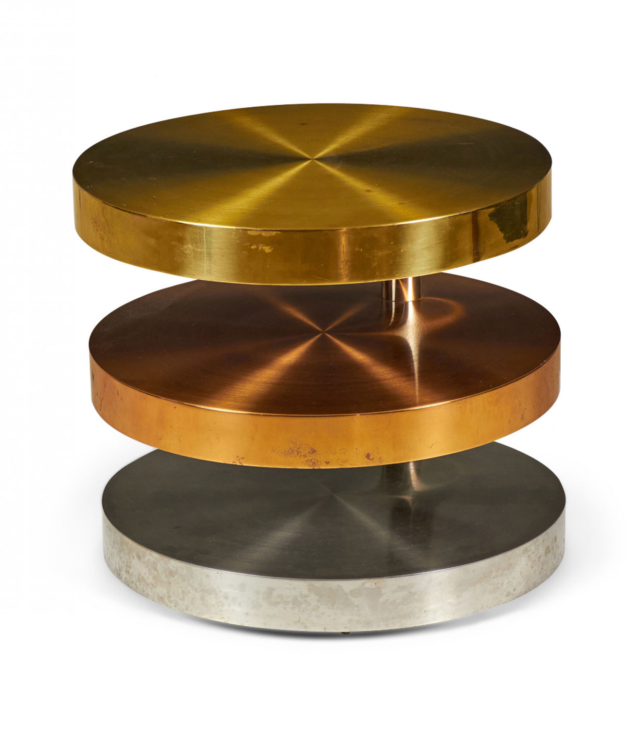 Style: Mid-Century Materials & Techniques: Brass, chrome, copper, metal Category: Tables Good; Wear consistent with age and use