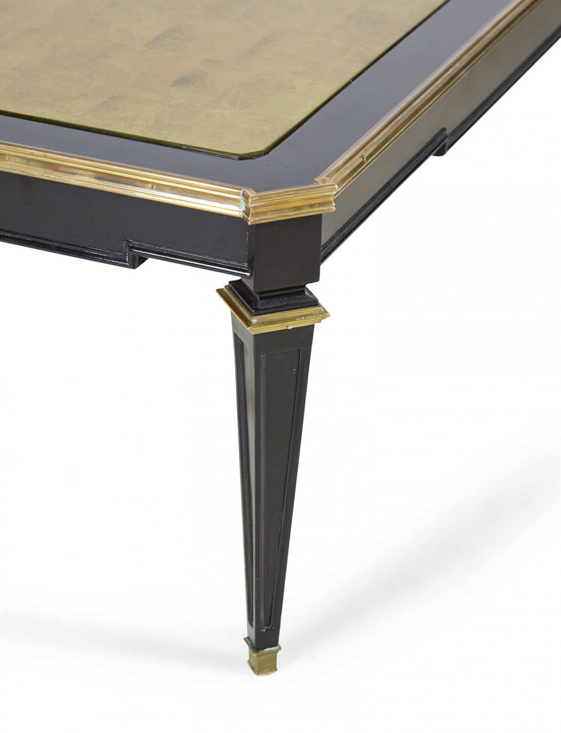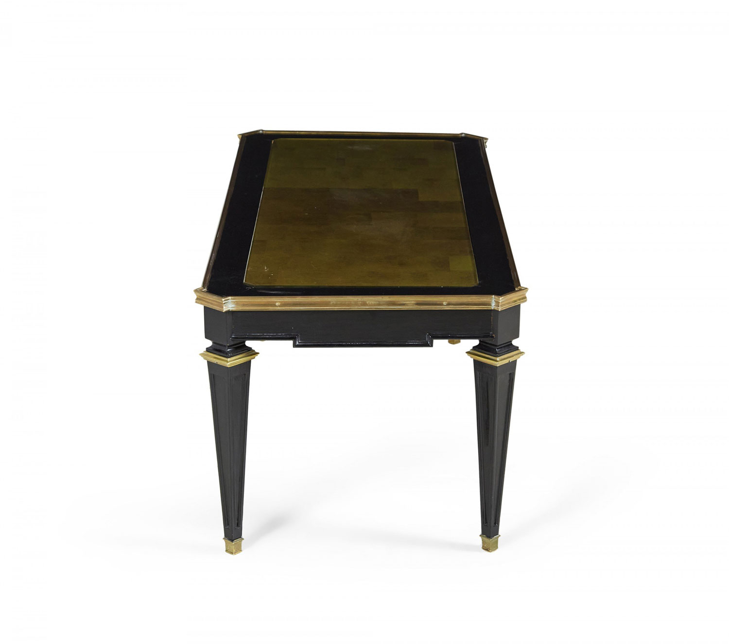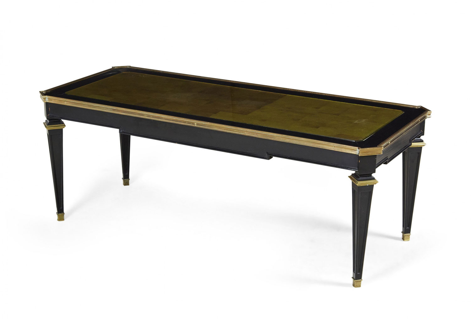 Maison Jansen French Mid-Century Ebonized Gilt Glass Top Coffee Table
