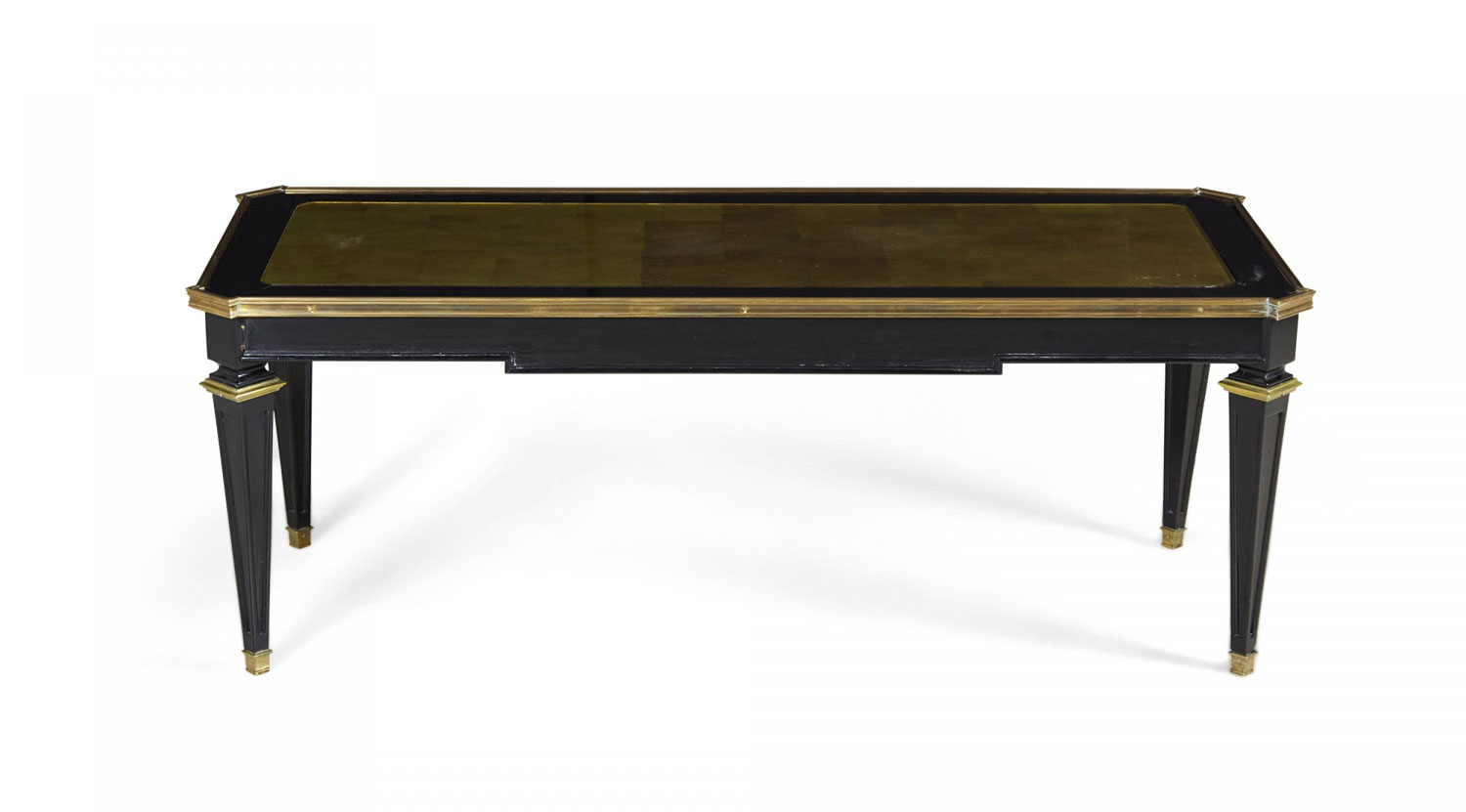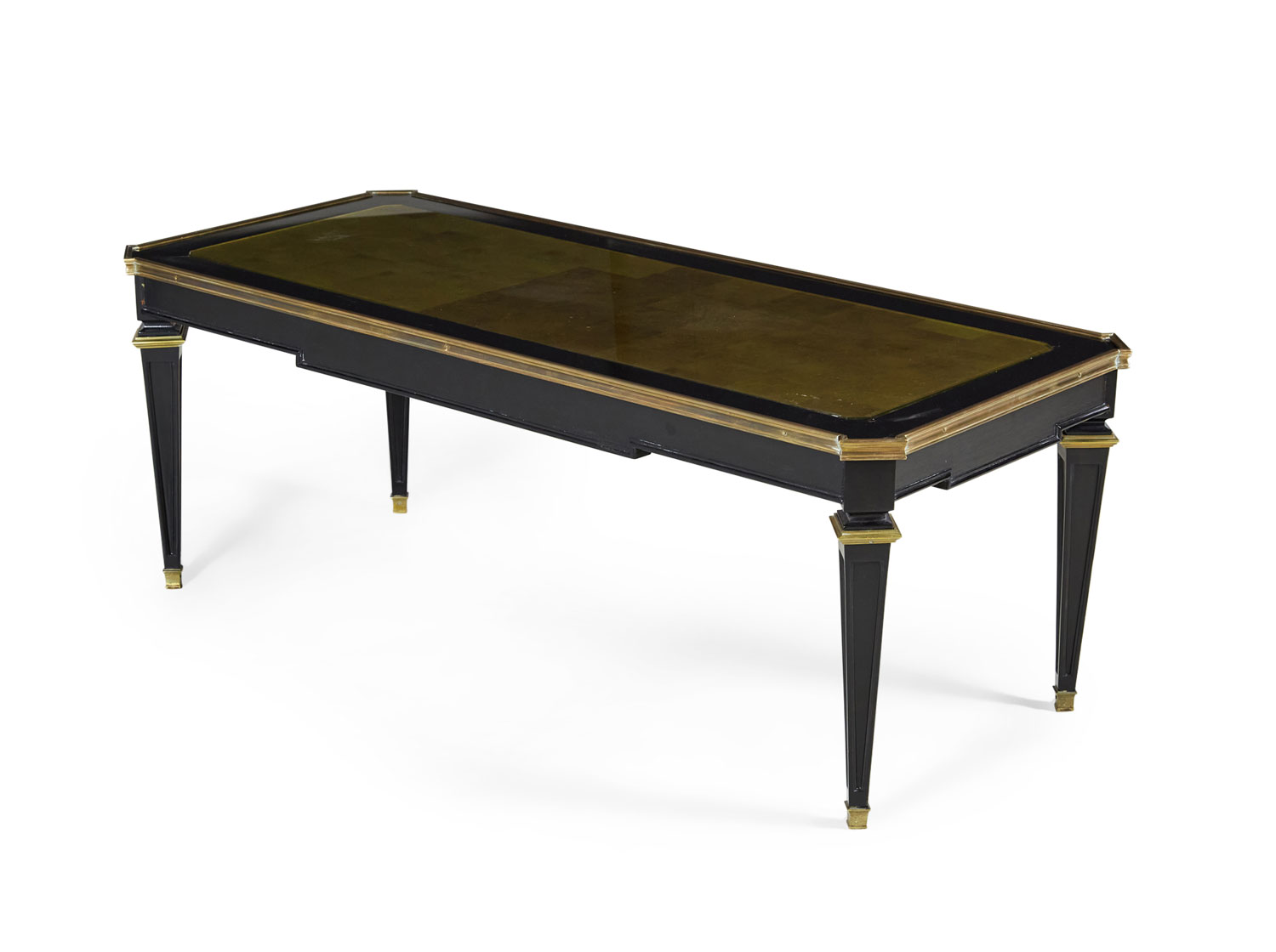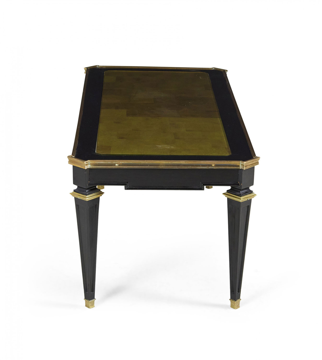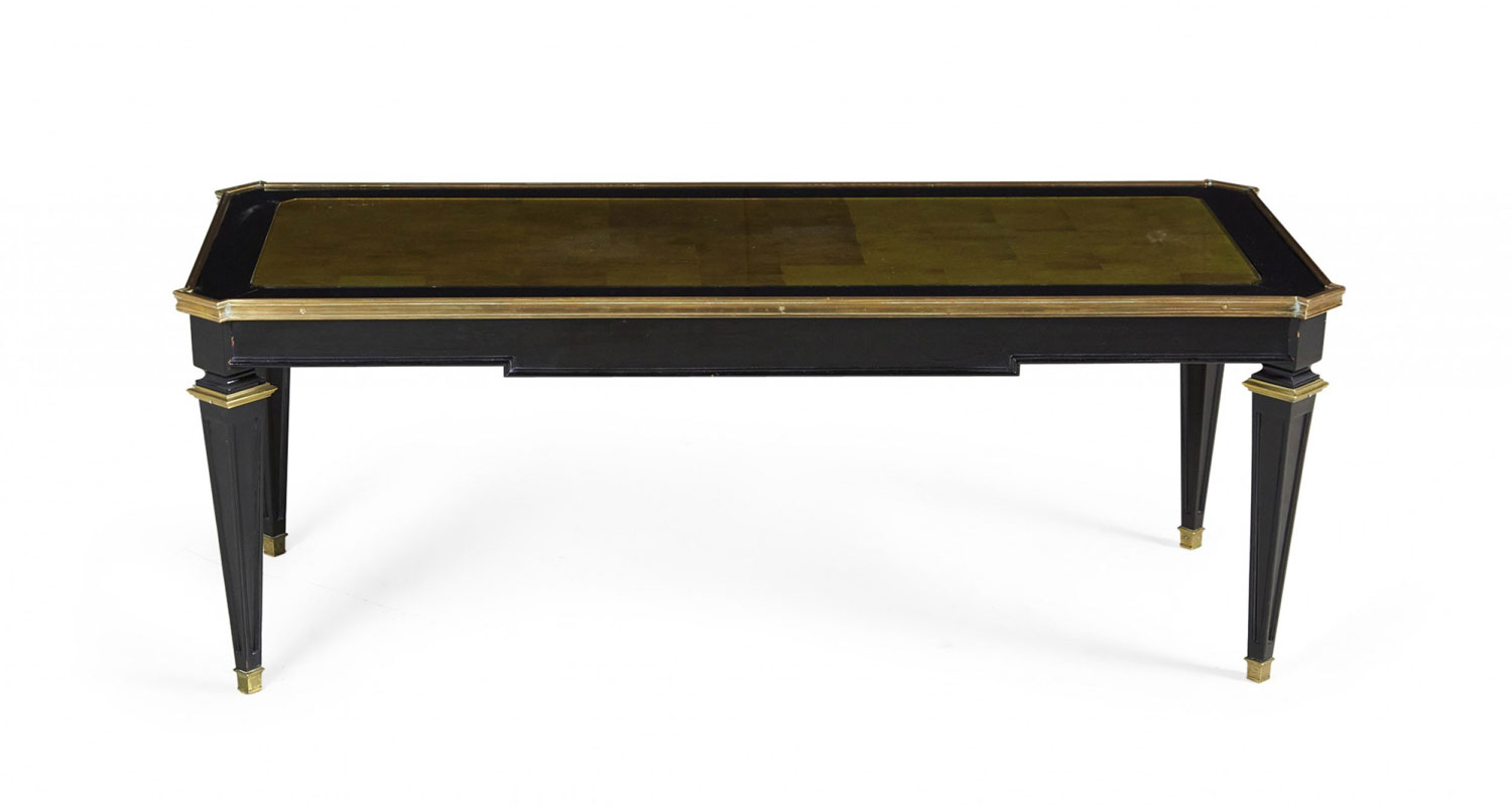 Maison Jansen French Mid-Century Ebonized Gilt Glass Top Coffee Table