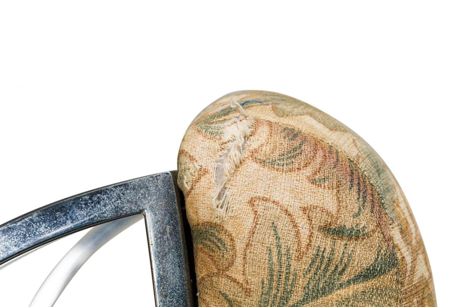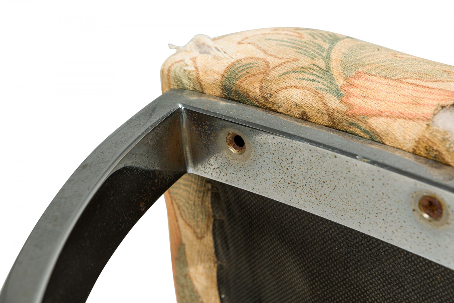 Style: Mid-Century Materials & Techniques: Chrome, fabric, metal, upholstered Category: Seating Good; Wear consistent with age and use