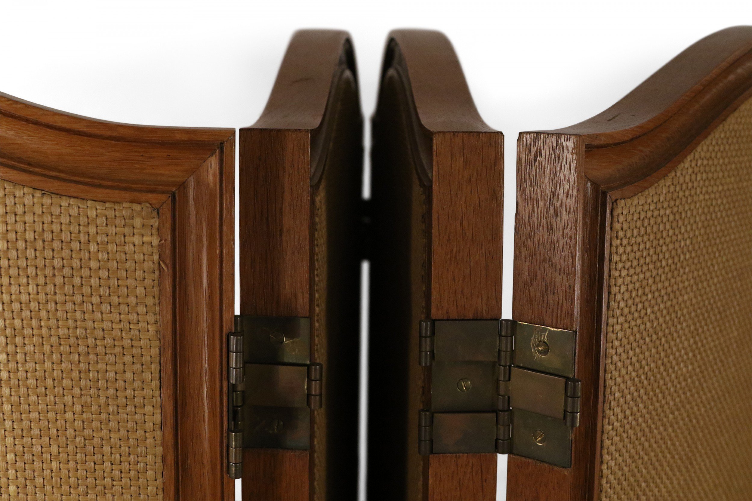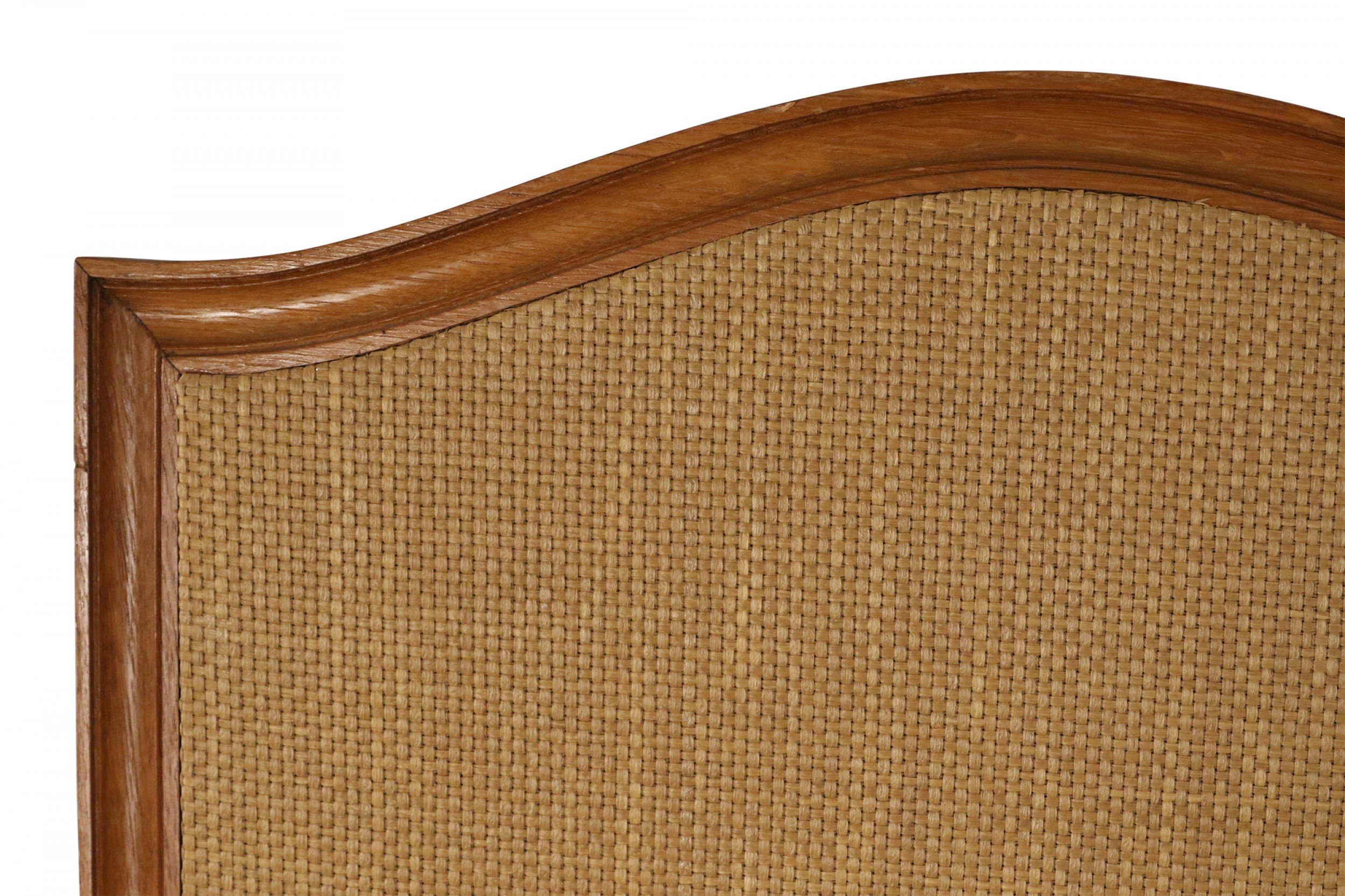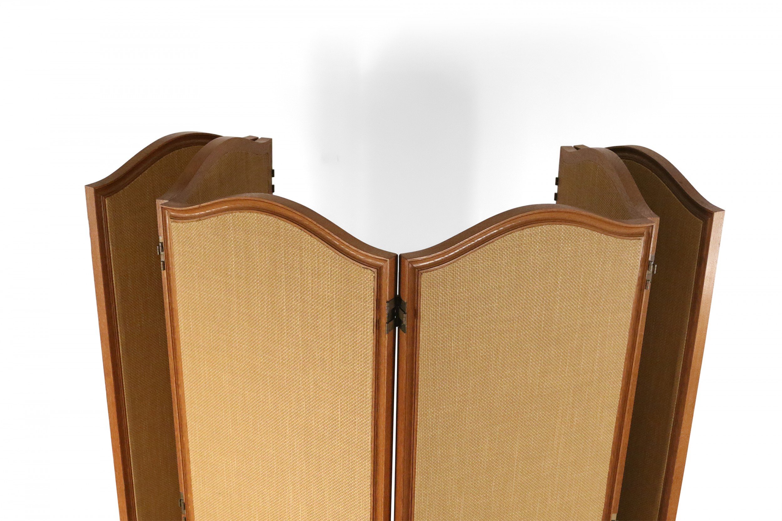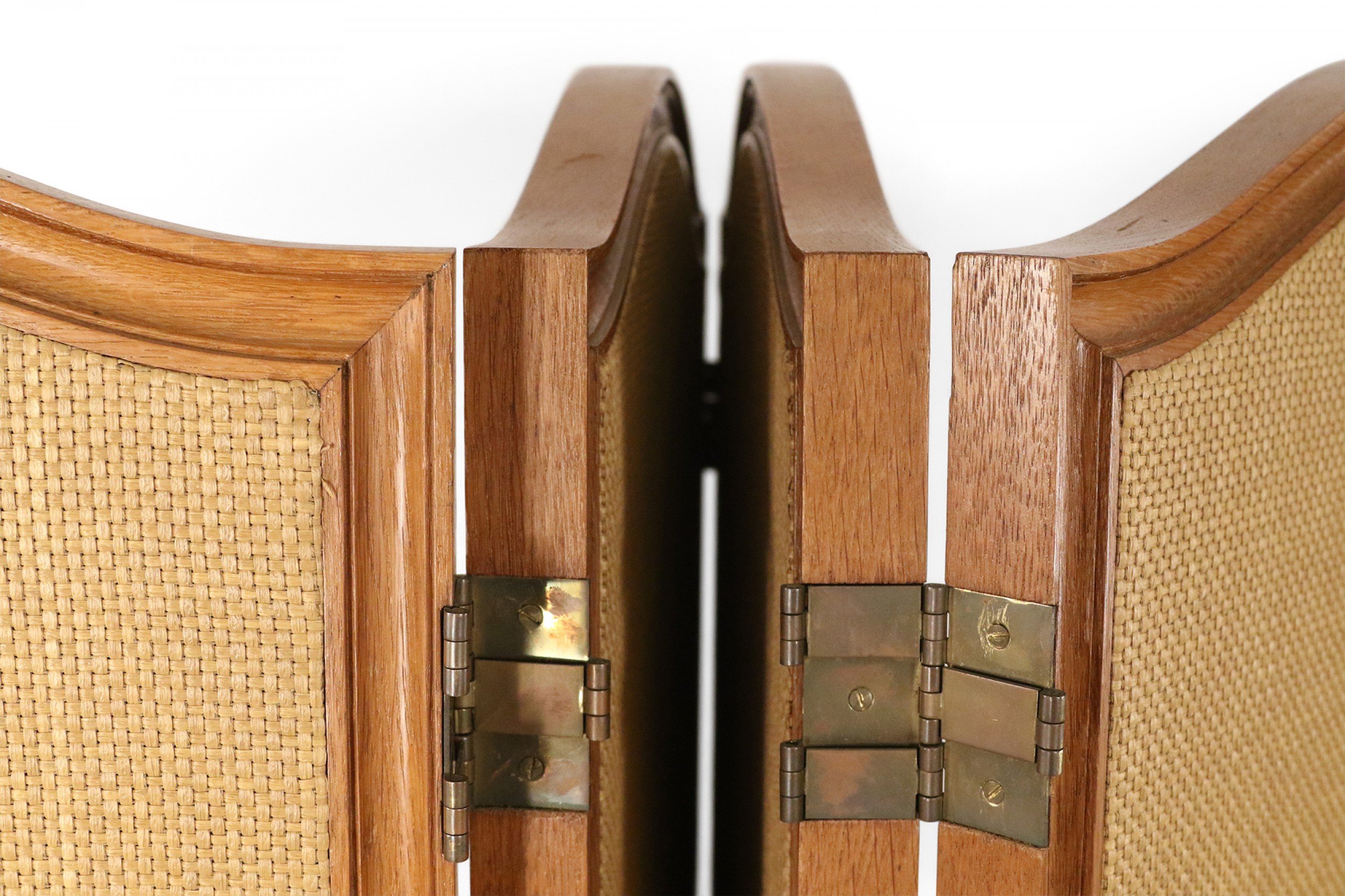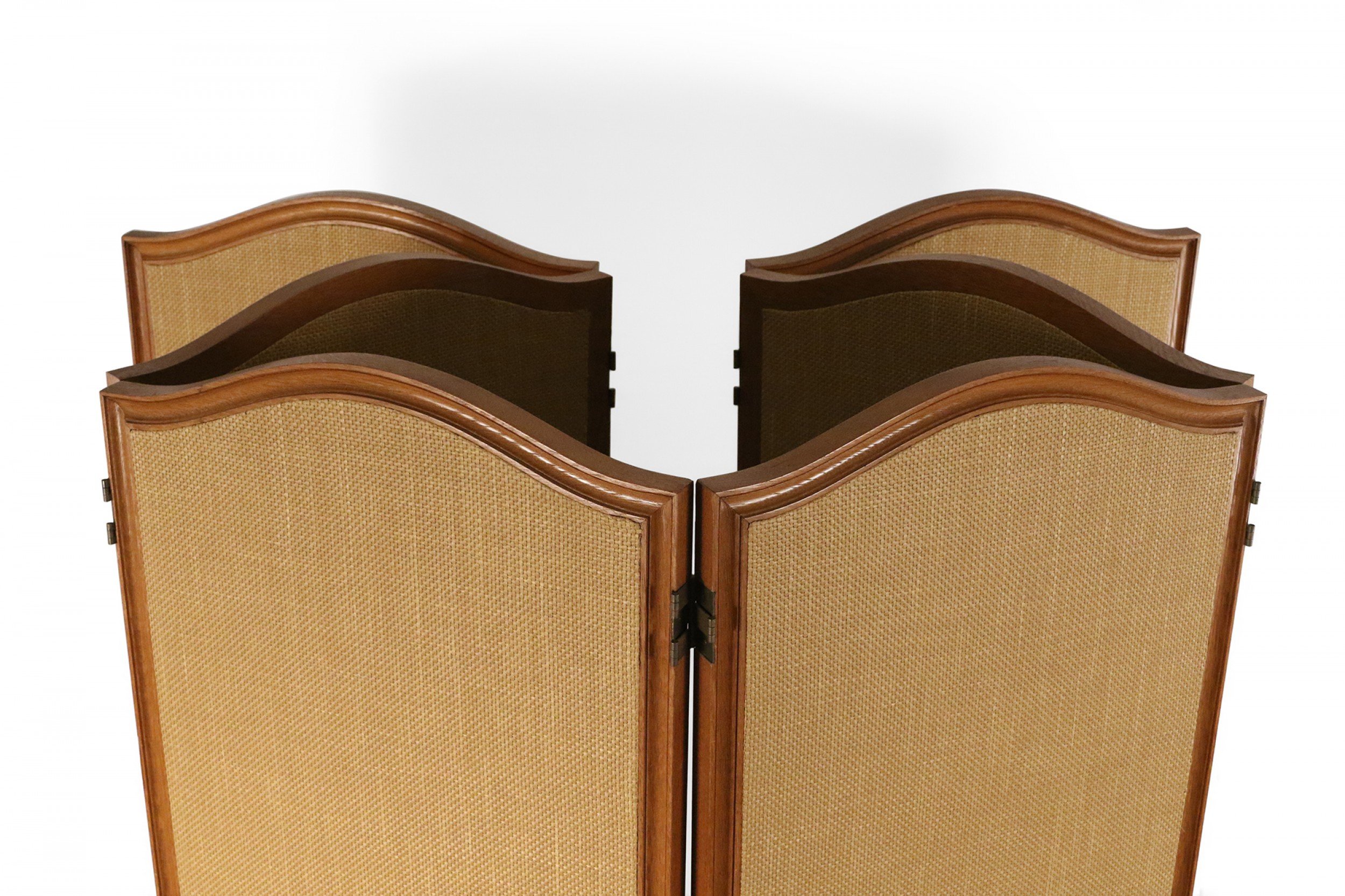 Mid-Century French 6-fold screen with oak shaped top frame and rattan panels.