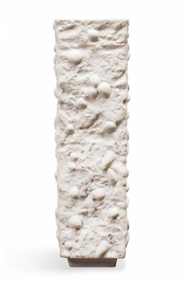 Mid-Century White Porcelain with Embedded Seashells Rectangular Vase