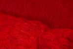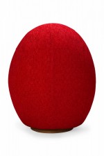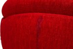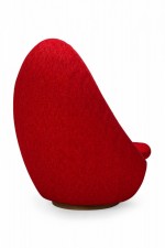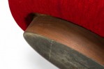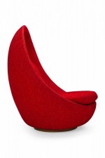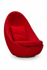 American Mid-Century swivel egg chair with a curved egg-like form upholstered in textured red upholstery with a matching throw pillow. (MILO BAUGHMAN)(Available in other fabrics: DUF0342, DUF0343)