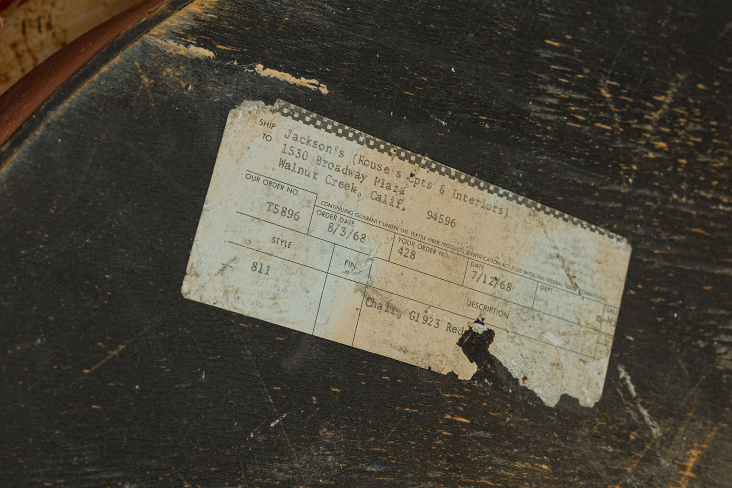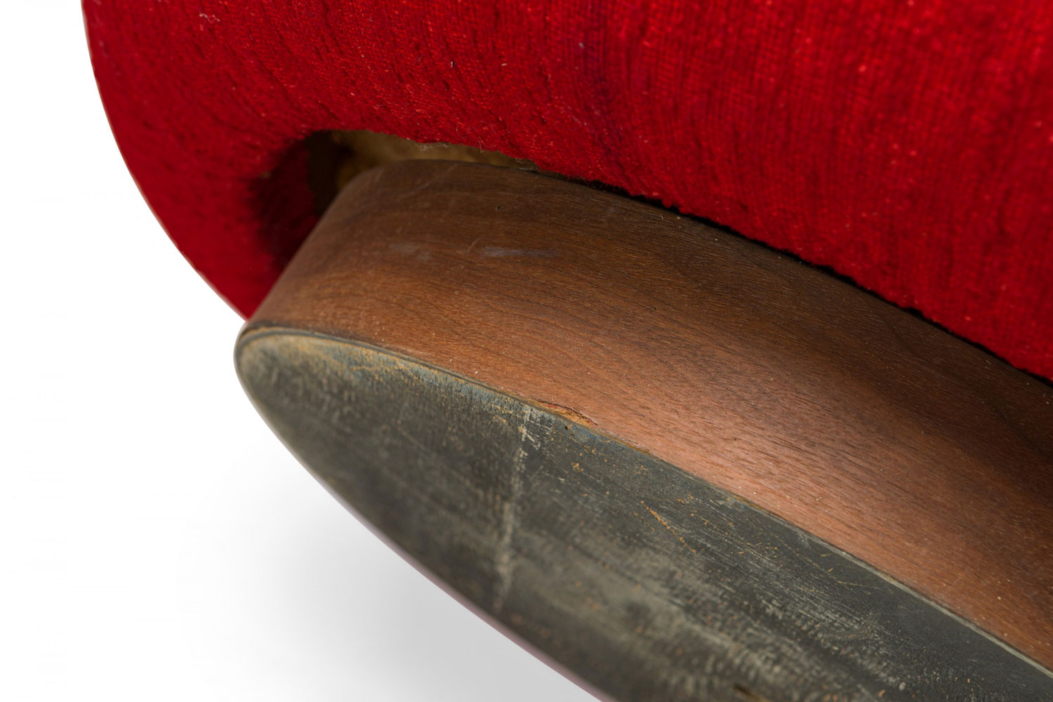 Style: Mid-Century Materials & Techniques: Upholstered Category: Seating, Office/Library Condition: Tear in the top front of the chair and some worn spots. Good; Wear consistent with age and use