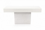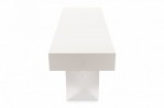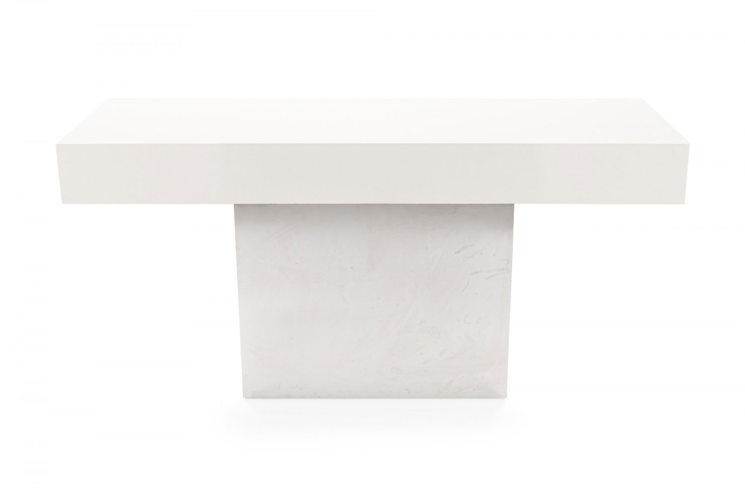 American Mid-Century monolithic console table with a rectangular white laminate top resting on a smaller polished chrome column. (MILO BAUGHMAN FOR DIRECTIONAL)