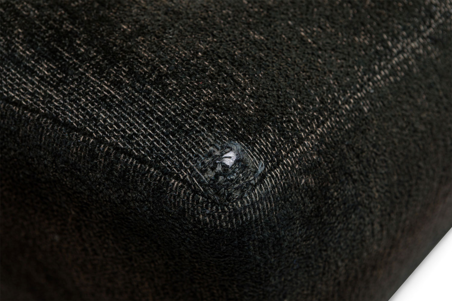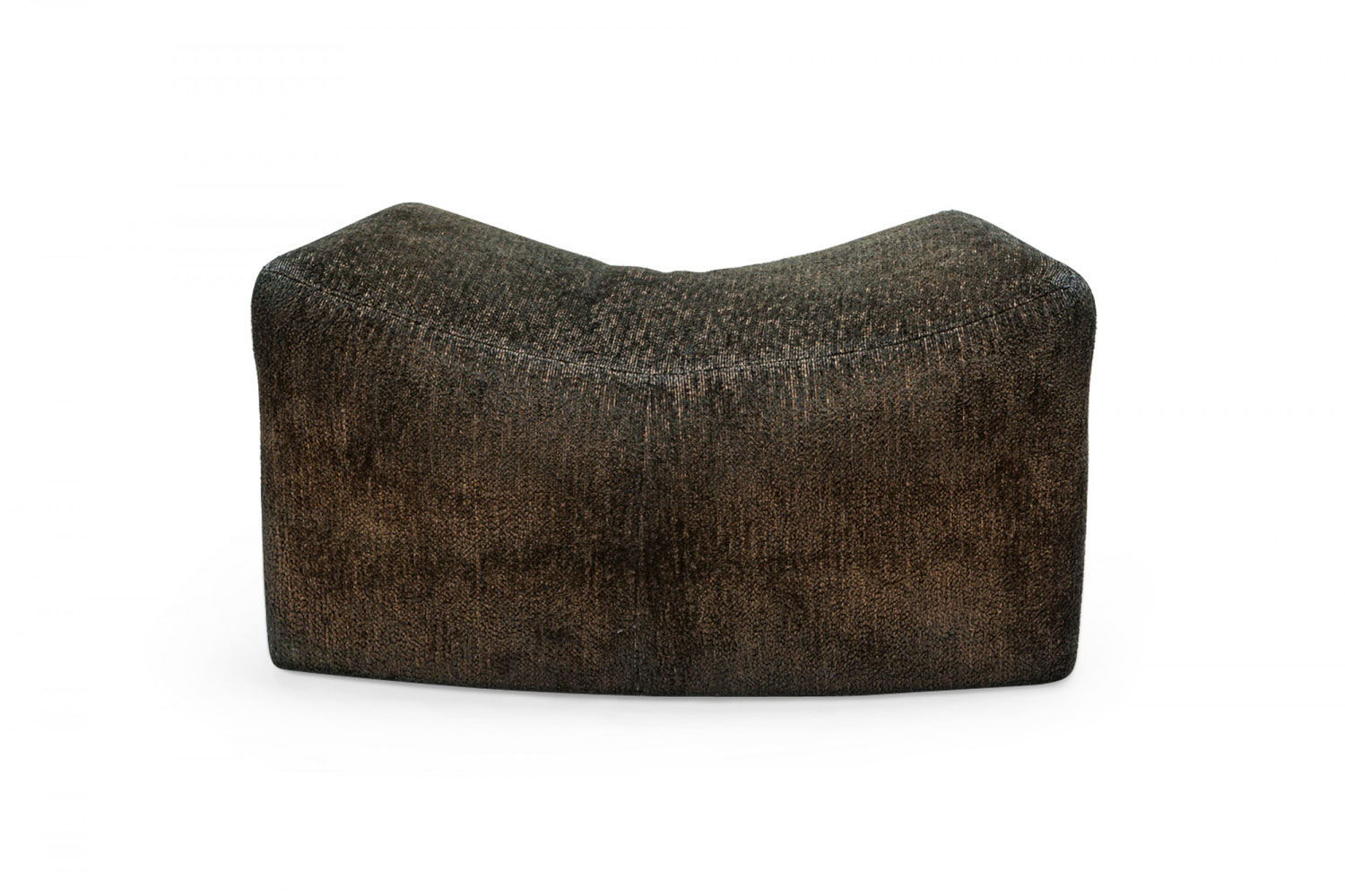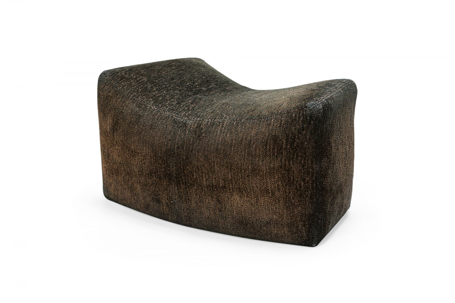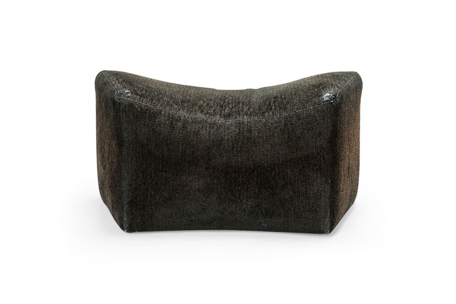 American Mid-Century saddle ottoman with textured black upholstery. (MILO BAUGHMAN)(Pair available in yellow: DUF0344).